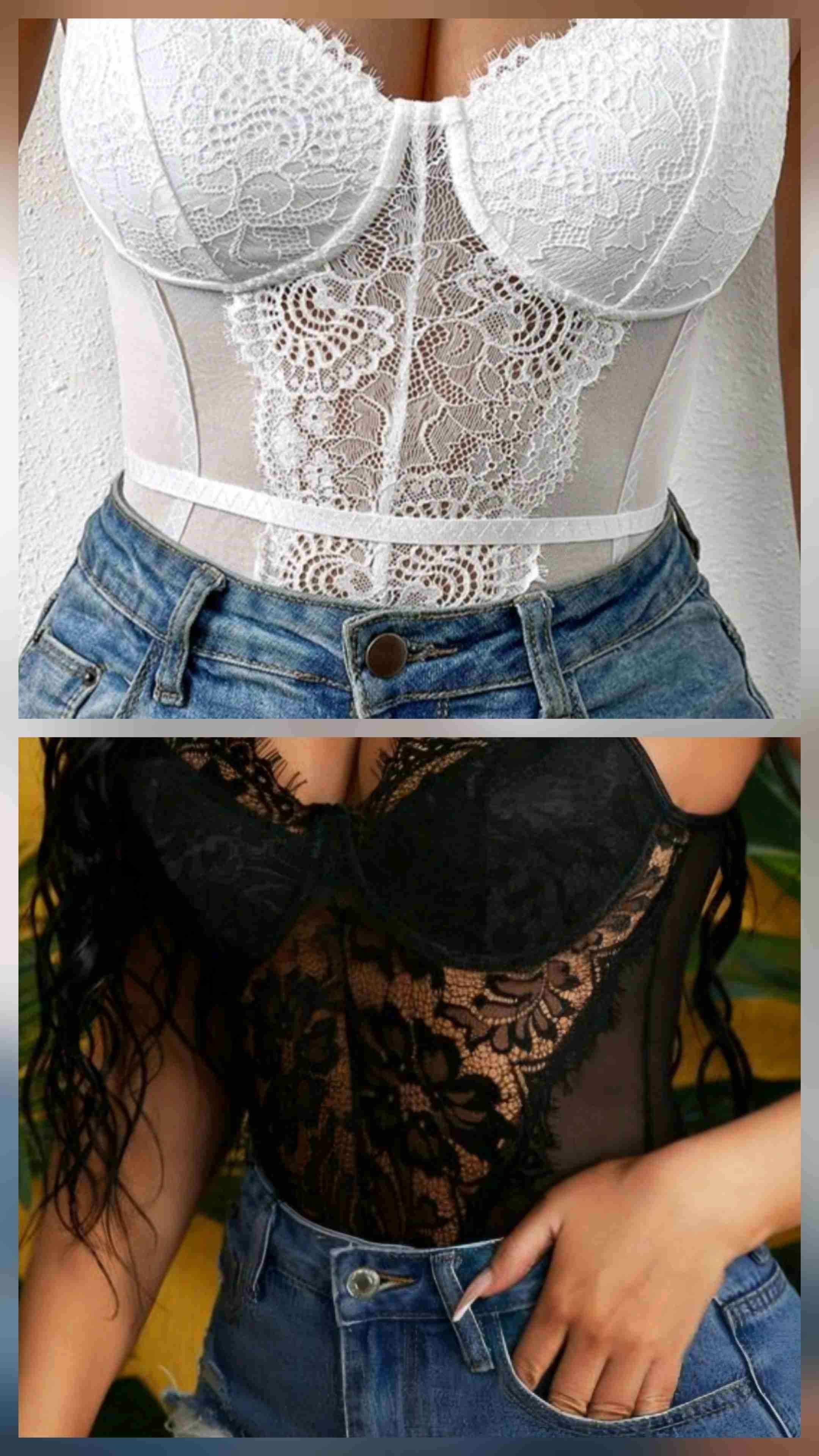 Set de 2 Elegantes bodys de encaje blanco y negro. Perfectos para ocasiones especiales o para un look casual chic. Totalmente nuevos sin uso, Tallas S