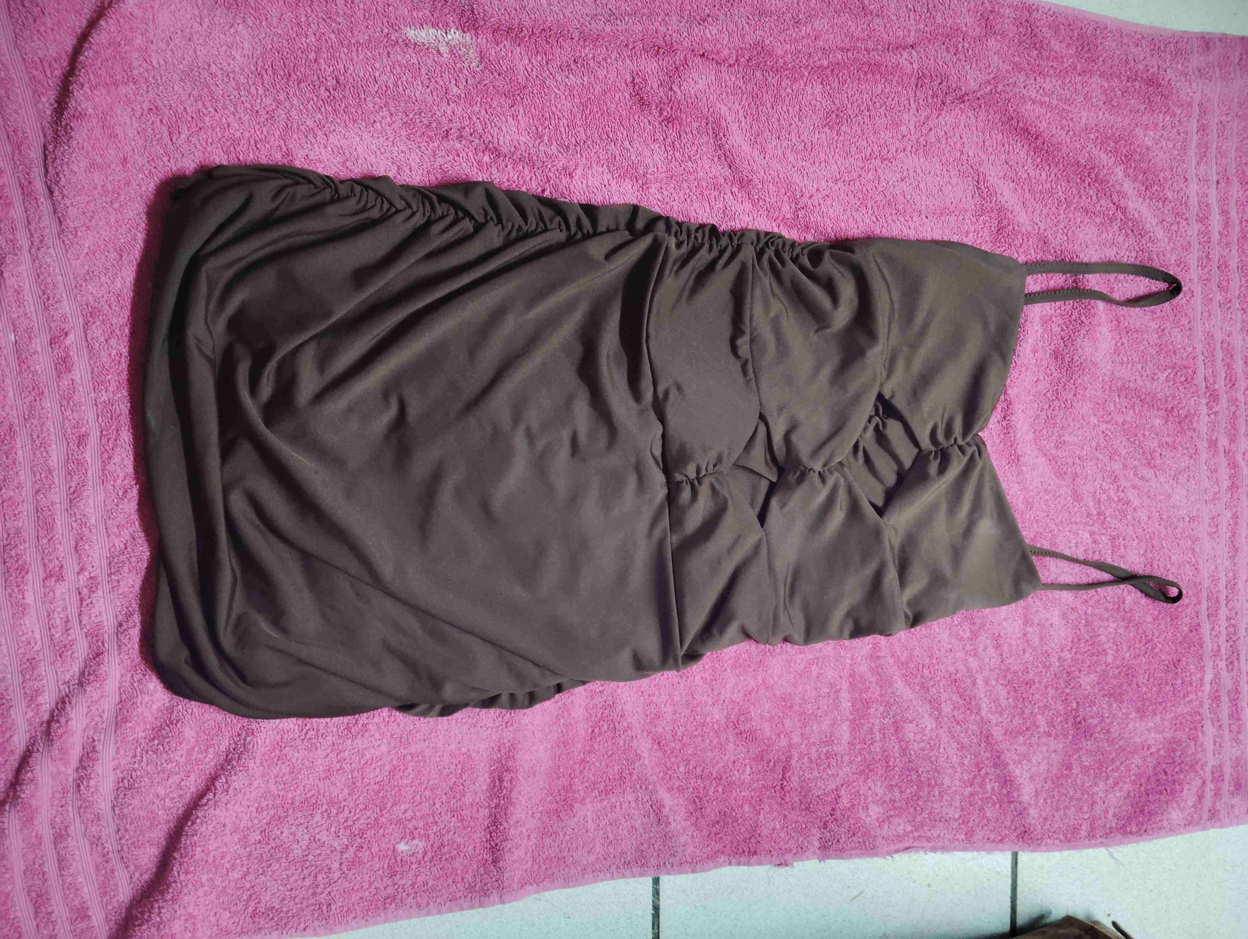 Elegante vestido marrón con tirantes, ideal para fiestas. En buen estado.