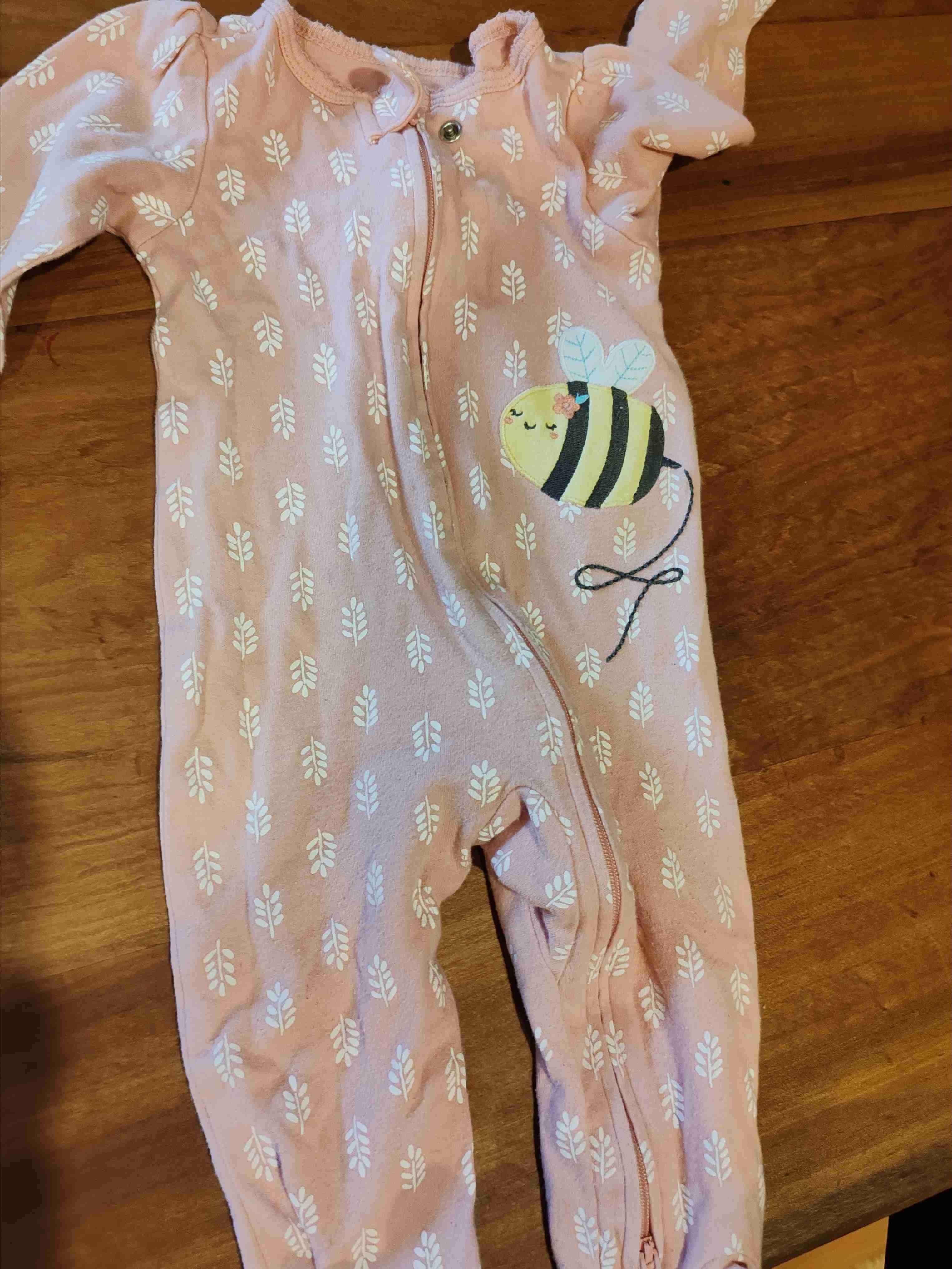 Pijama de bebé color rosado con diseño de abejita. Tela suave, ideal para el otoño. Talla 6 meses