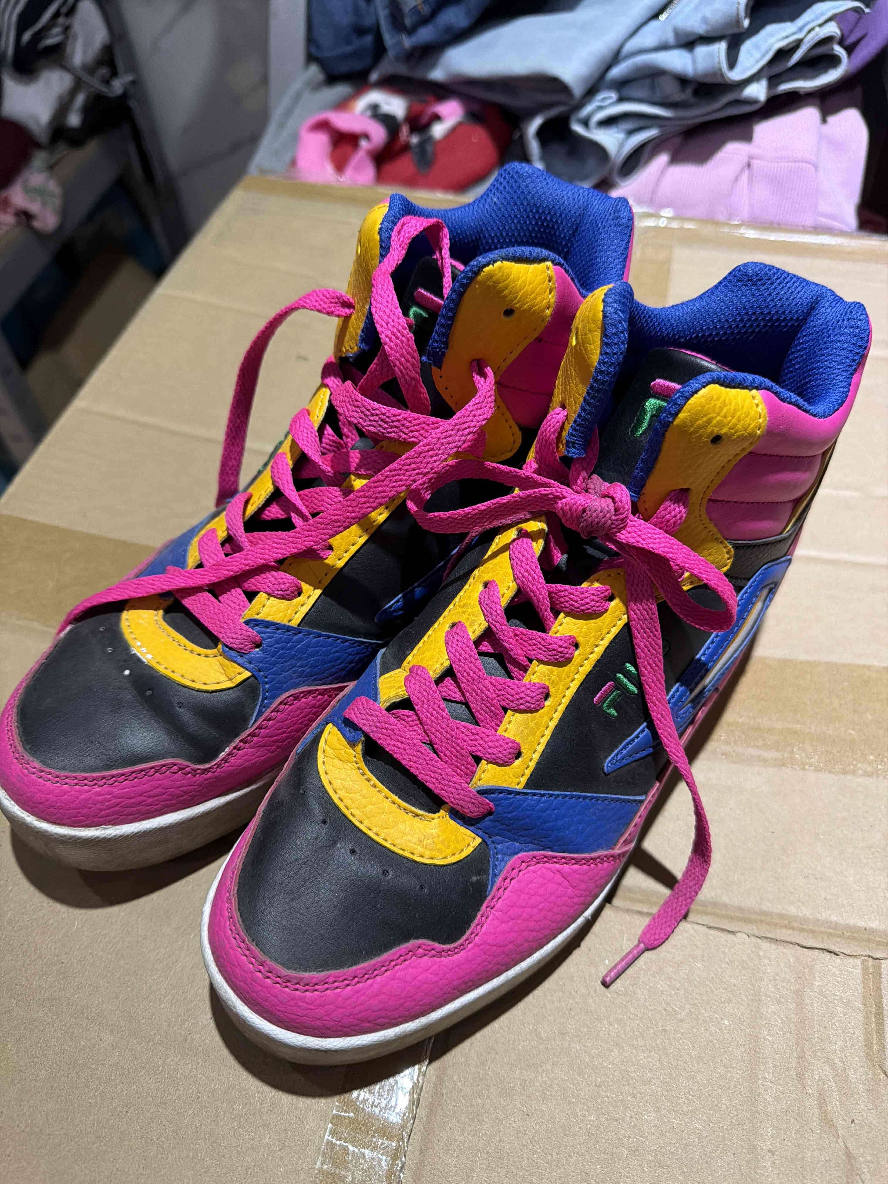 Zapatillas deportivas vibrantes con detalles en rosa, azul y amarillo. Perfectas para destacar en cualquier ocasión. Originales fila