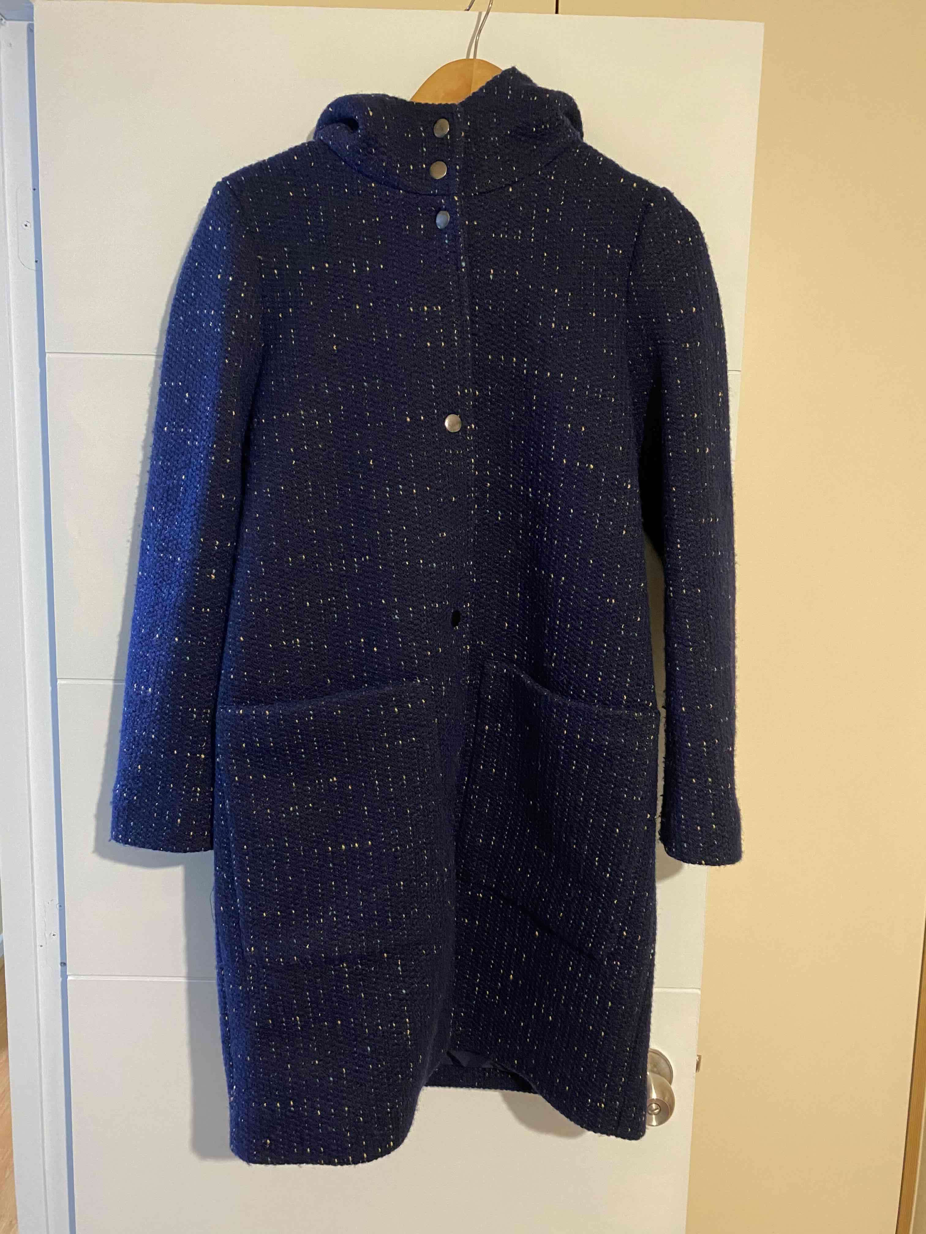 Elegante abrigo azul de lana, ideal para invierno. En buen estado