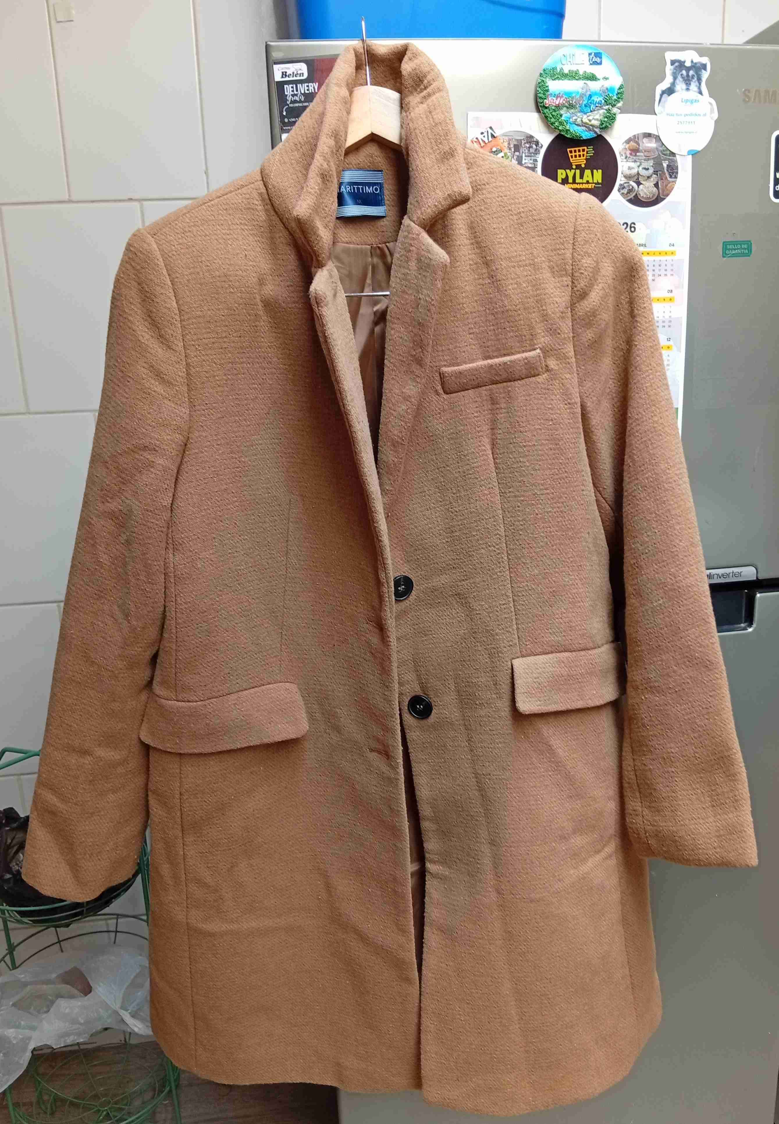 Abrigo café claro clásico de mujer, ideal para el invierno. En buen estado, con botones frontales.