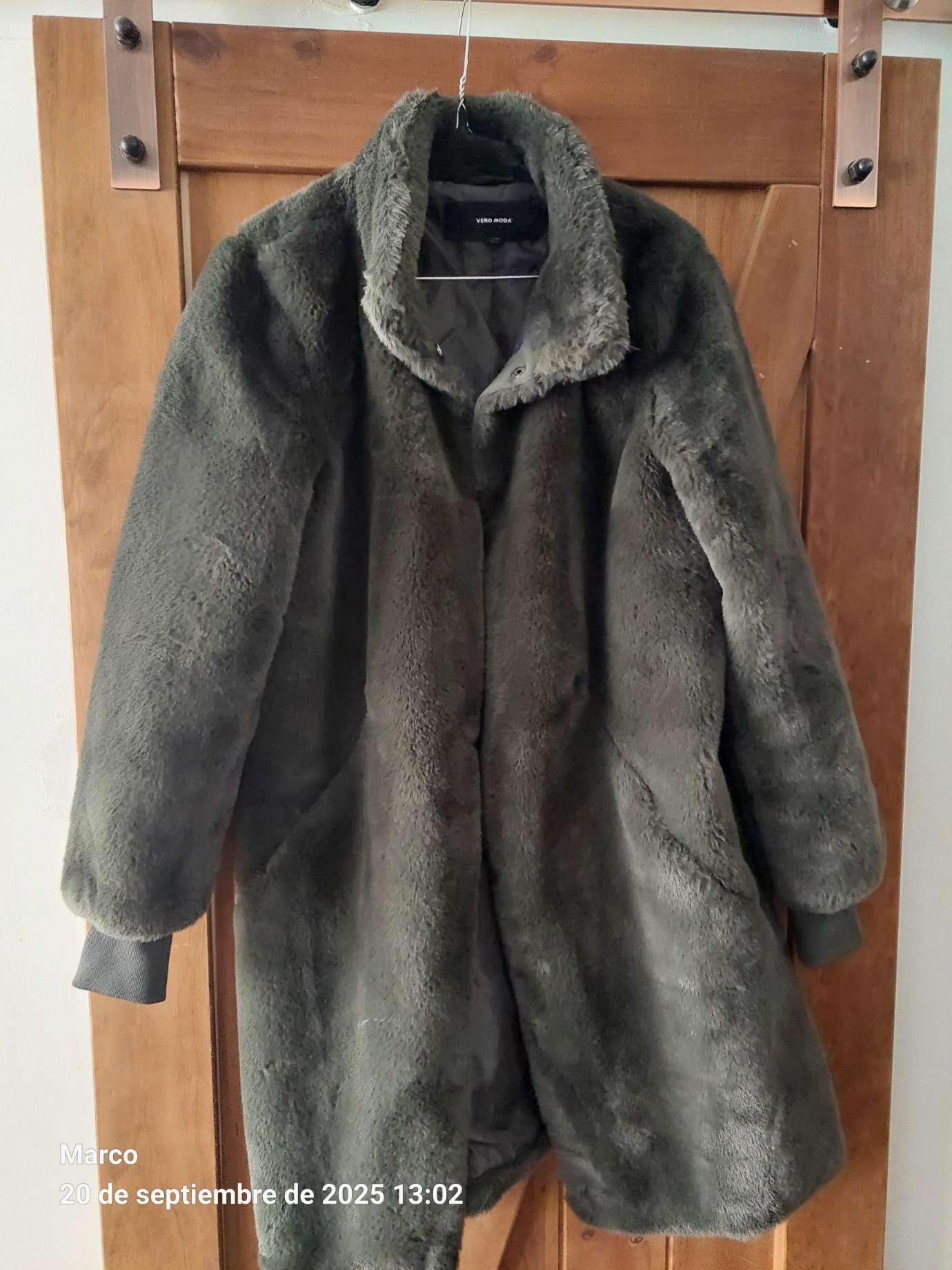 Elegante abrigo de piel sintética en color verde oscuro. Perfecto para el invierno, en buen estado.