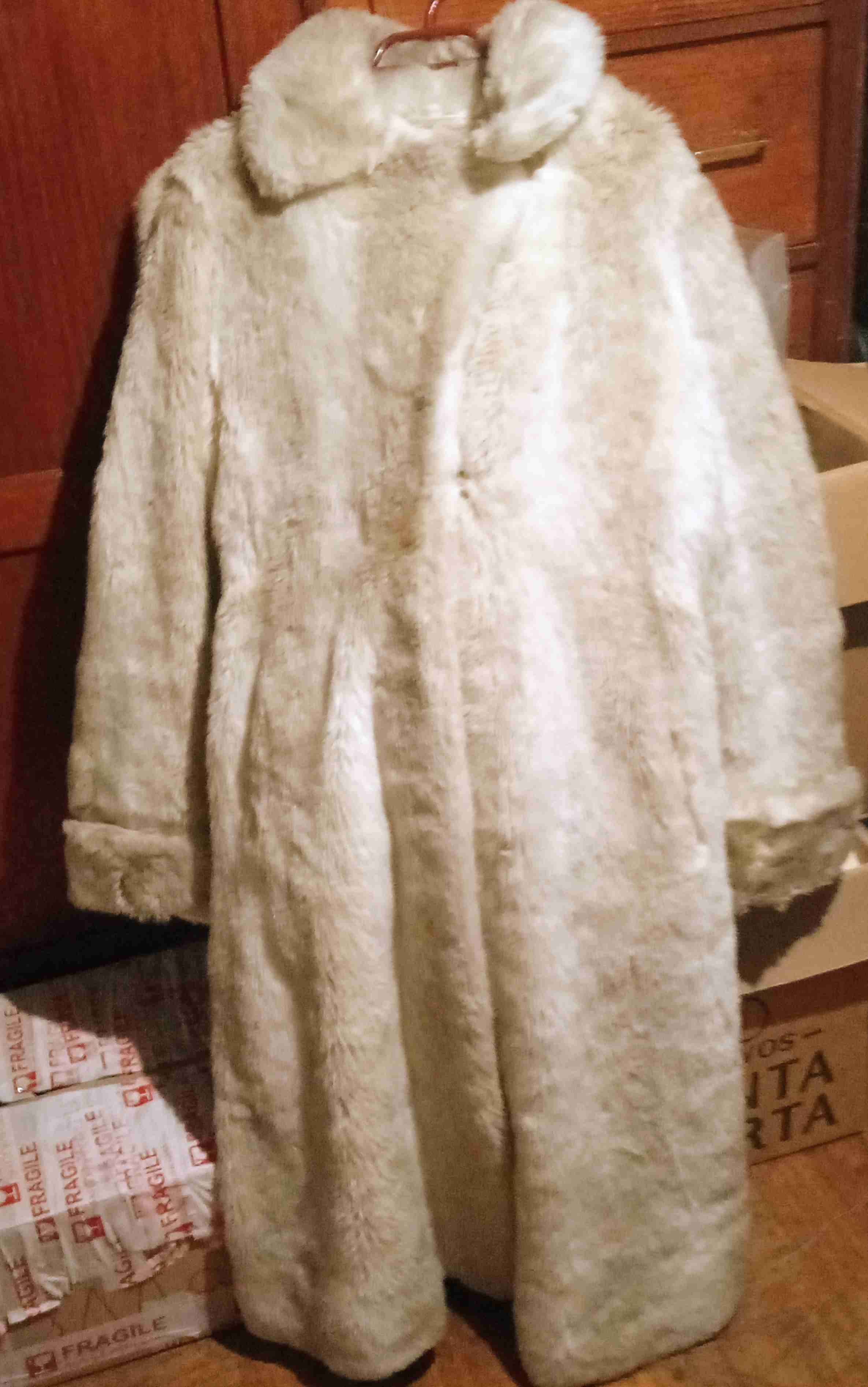 Abrigo de piel original en color crema, ideal para el invierno. En buen estado, cálido y elegante, perfecto para ocasiones especiales.