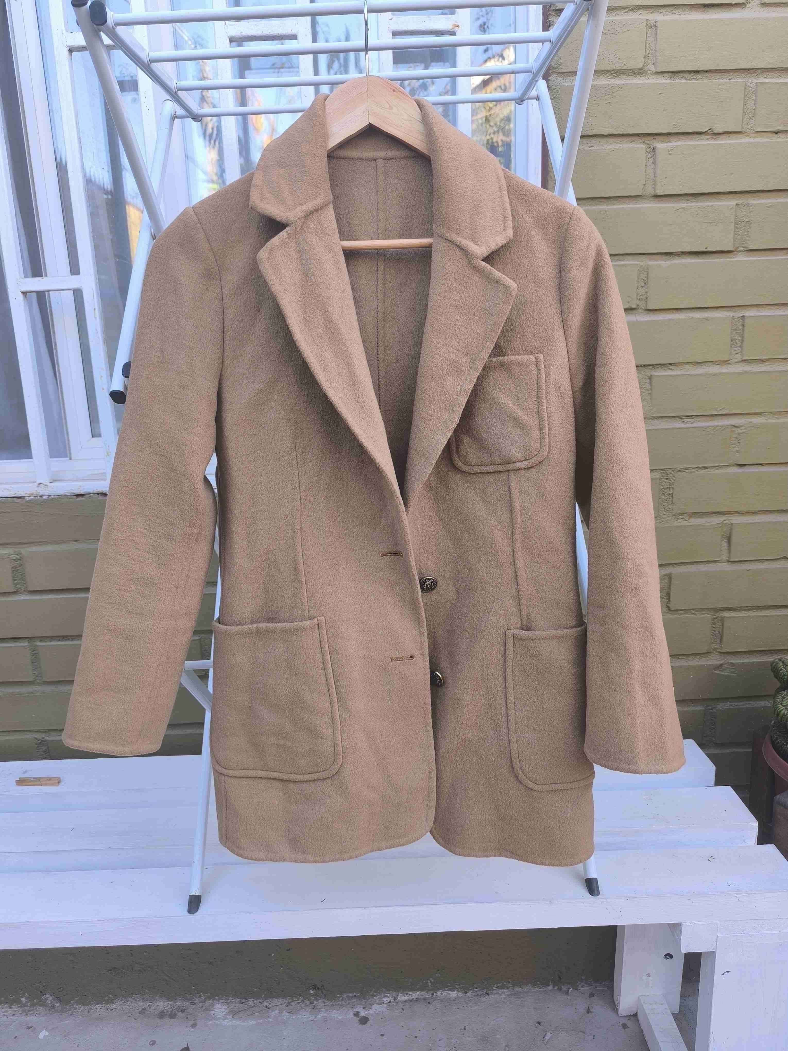 Abrigo de mujer en color marrón claro, ideal para ocasiones casuales. Se ve en buen estado.