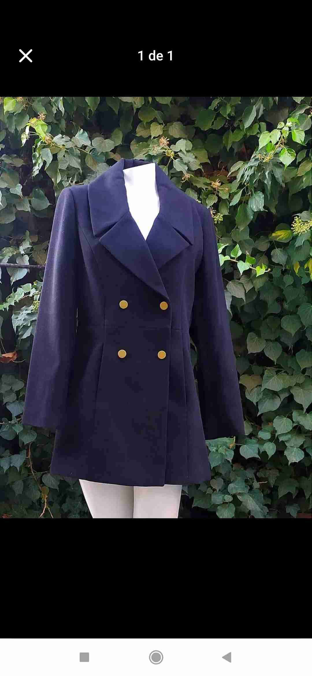 Elegante abrigo negro de paño, marca ASH, talla M con botones dorados en impecable estado