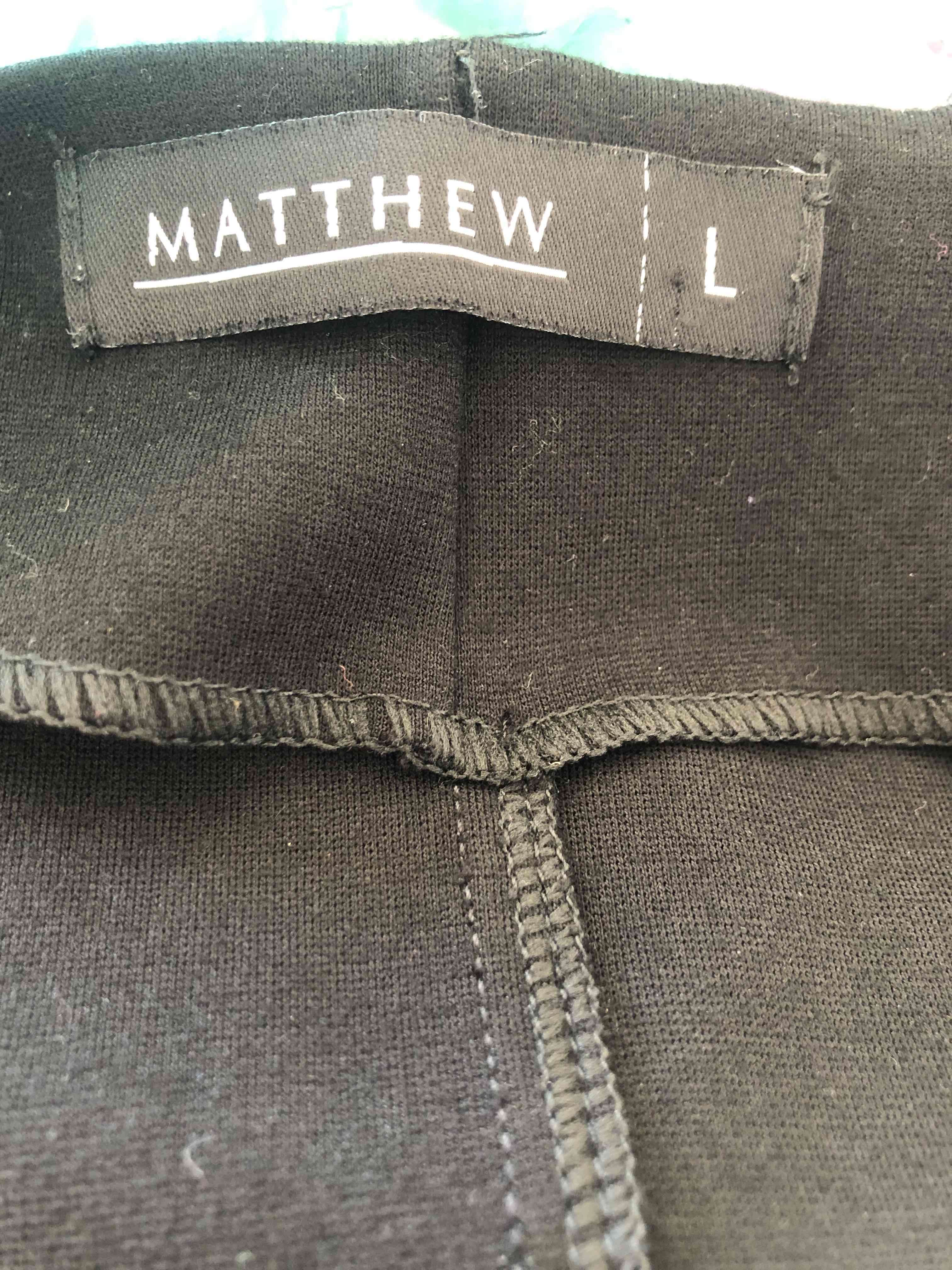 Abrigo negro de estilo casual, talla L de la marca Matthew. Ideal para el uso diario, en buen estado. Puños y bolsillos con detalles de lana