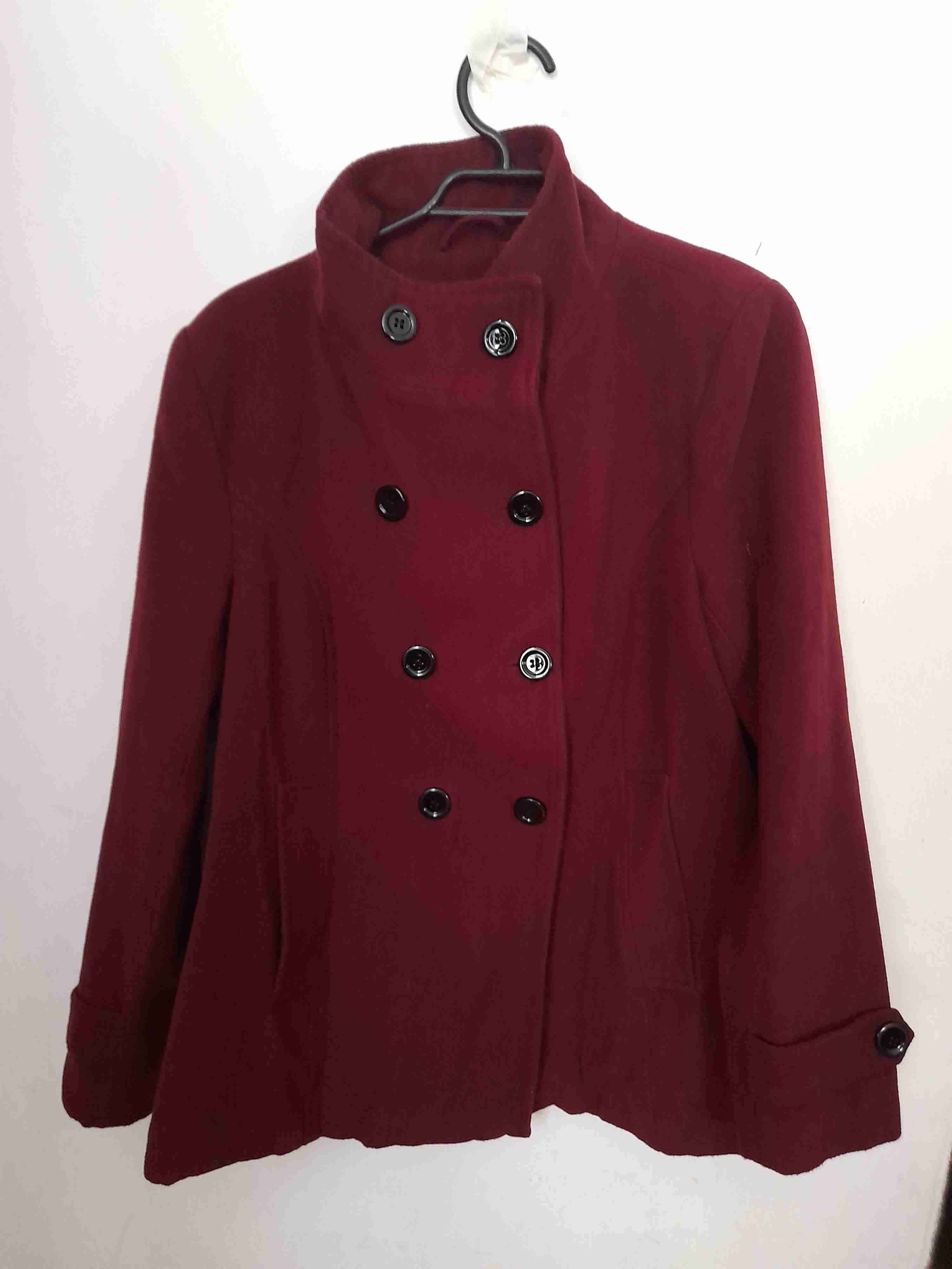 Abrigo rojo italiano, elegante con botones, perfecto para el invierno. Buen estado, ideal para un look formal o casual.