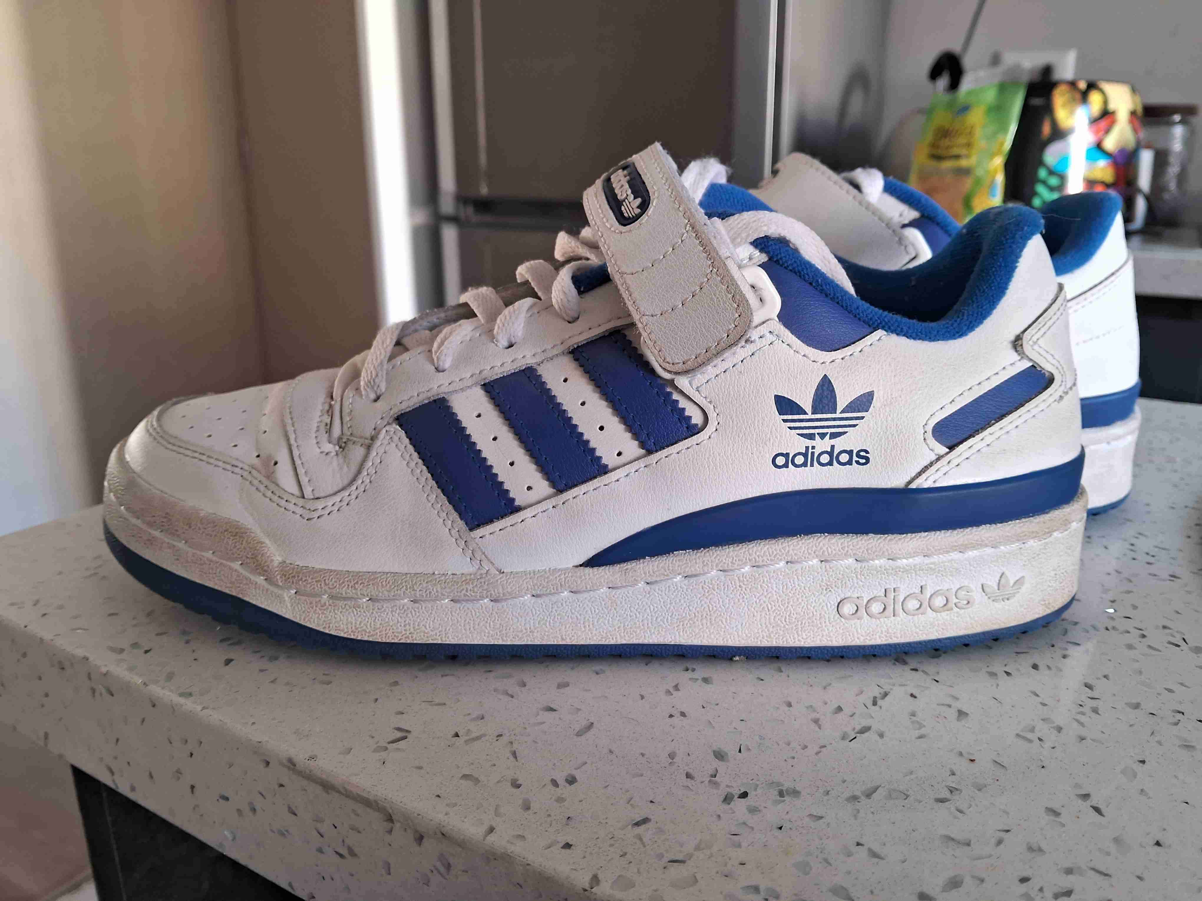 Zapatillas Adidas Forum blancas con azul. En excelente estado, muy poco uso, ideal para uso diario o deportivo.