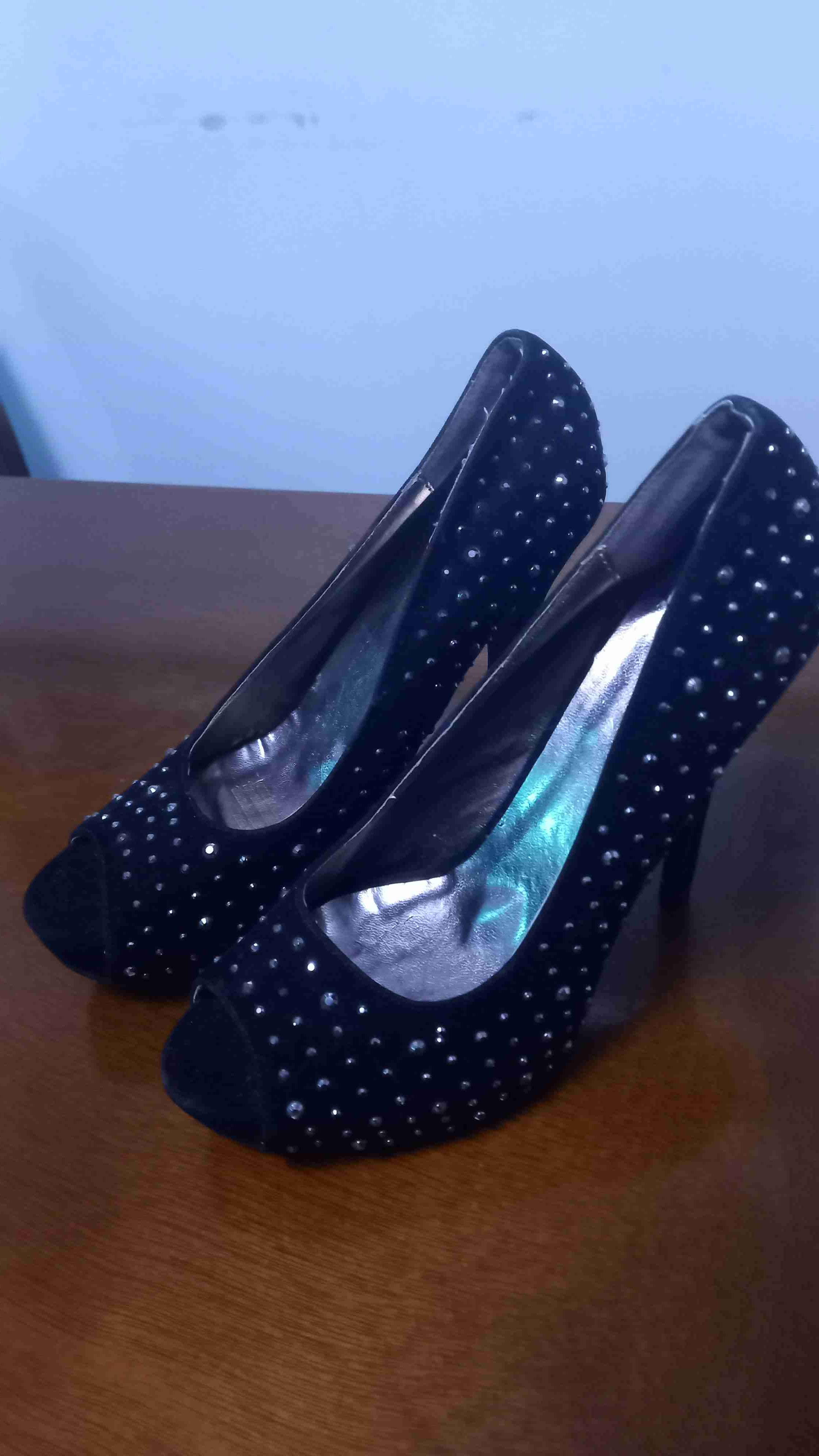 Elegantes tacones negros decorados con tachuelas, ideales para una noche especial. En buen estado y listos para usar.
