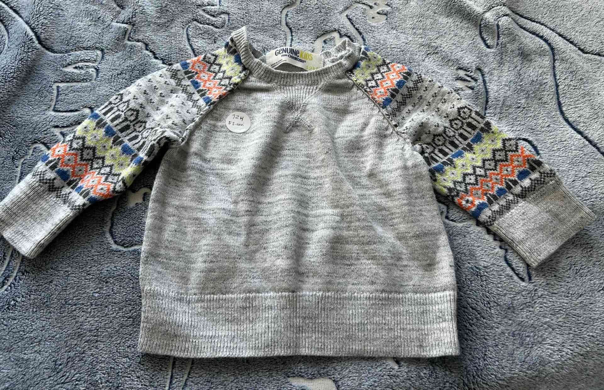 Suéter para niño con diseño colorido en las mangas. Perfecto para mantener a tu hijo abrigado y con estilo. Buen estado general. 12M