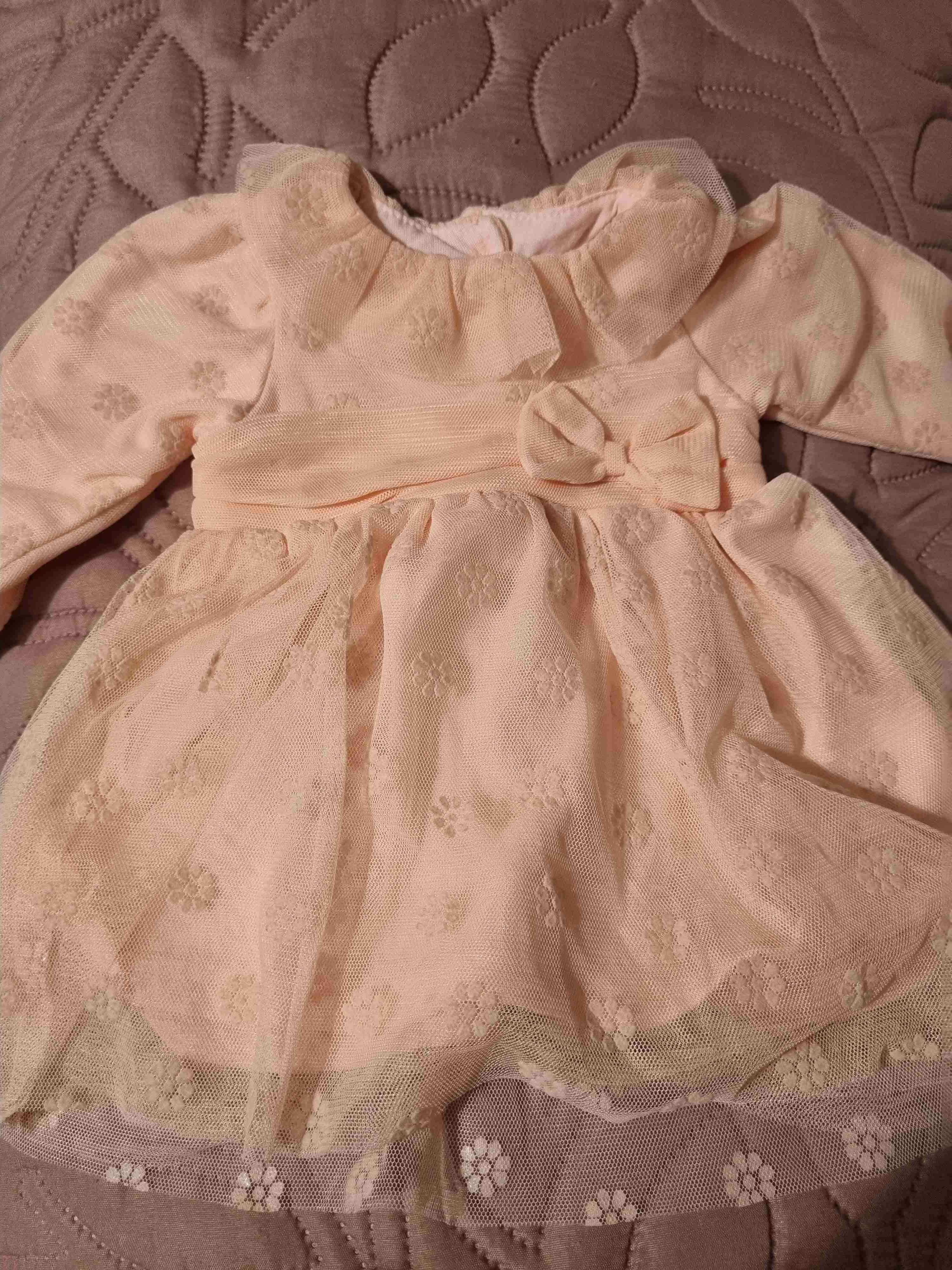 Lindo vestido para bebé en color rosa claro con detalles de encaje floral. Ideal para ocasiones especiales. En buen estado. Talla:rn