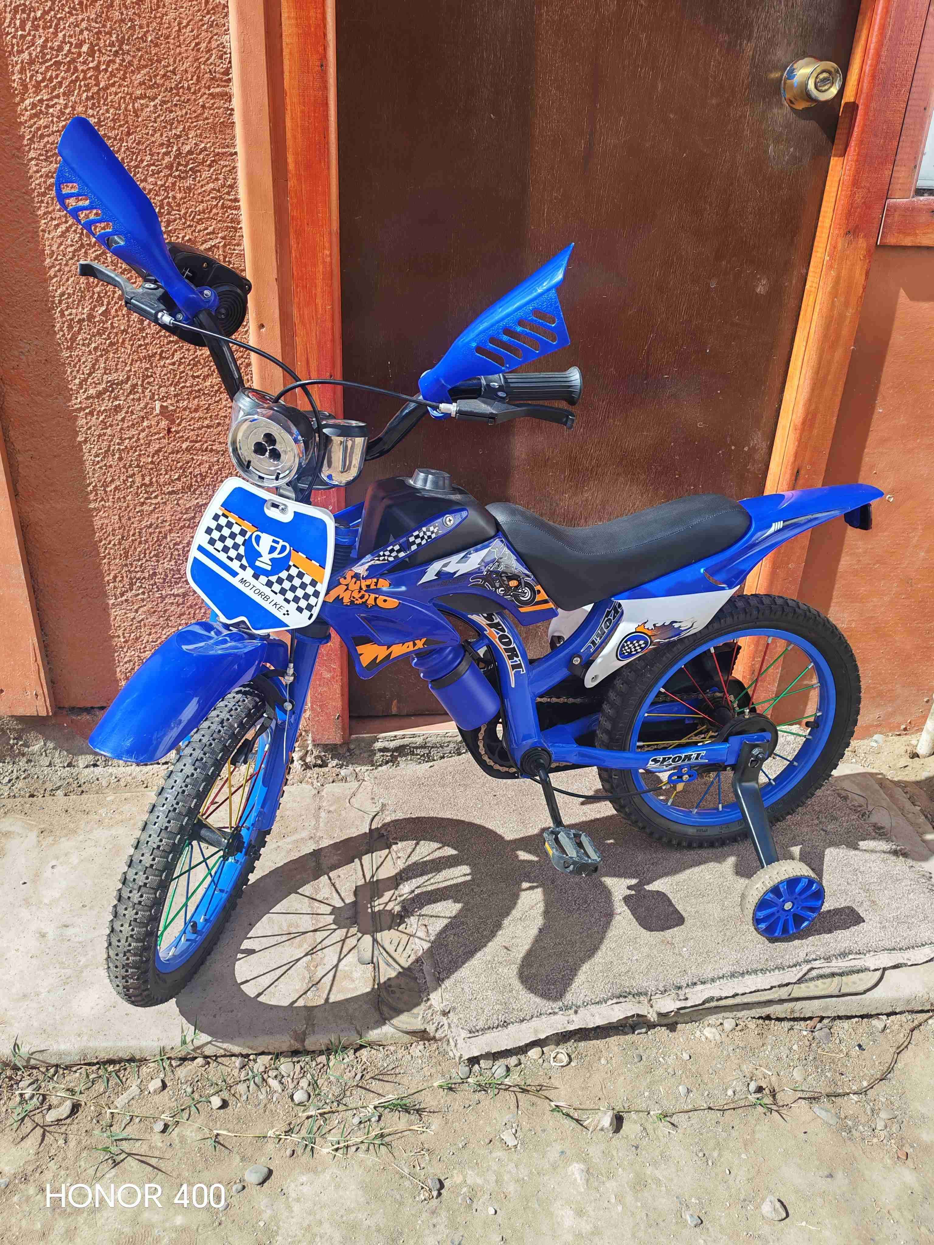 Bicicleta para niño de color azul con rueditas extraíbles. Ideal para aprender a andar y disfrutar al aire libre.