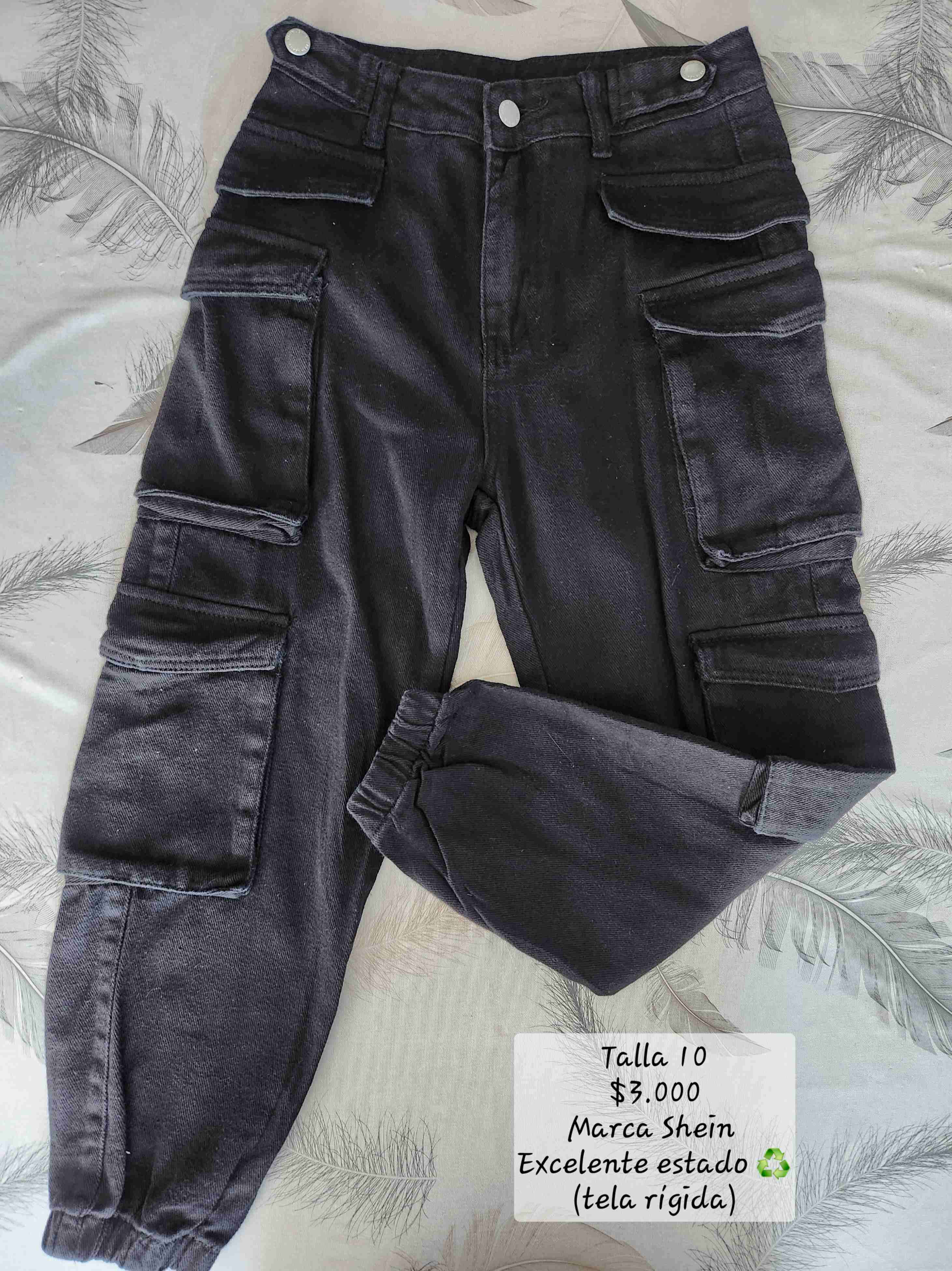 Pantalones cargo marca Shein, color negro y tela rígida. Excelente estado, ideales para un look casual. Talla 10