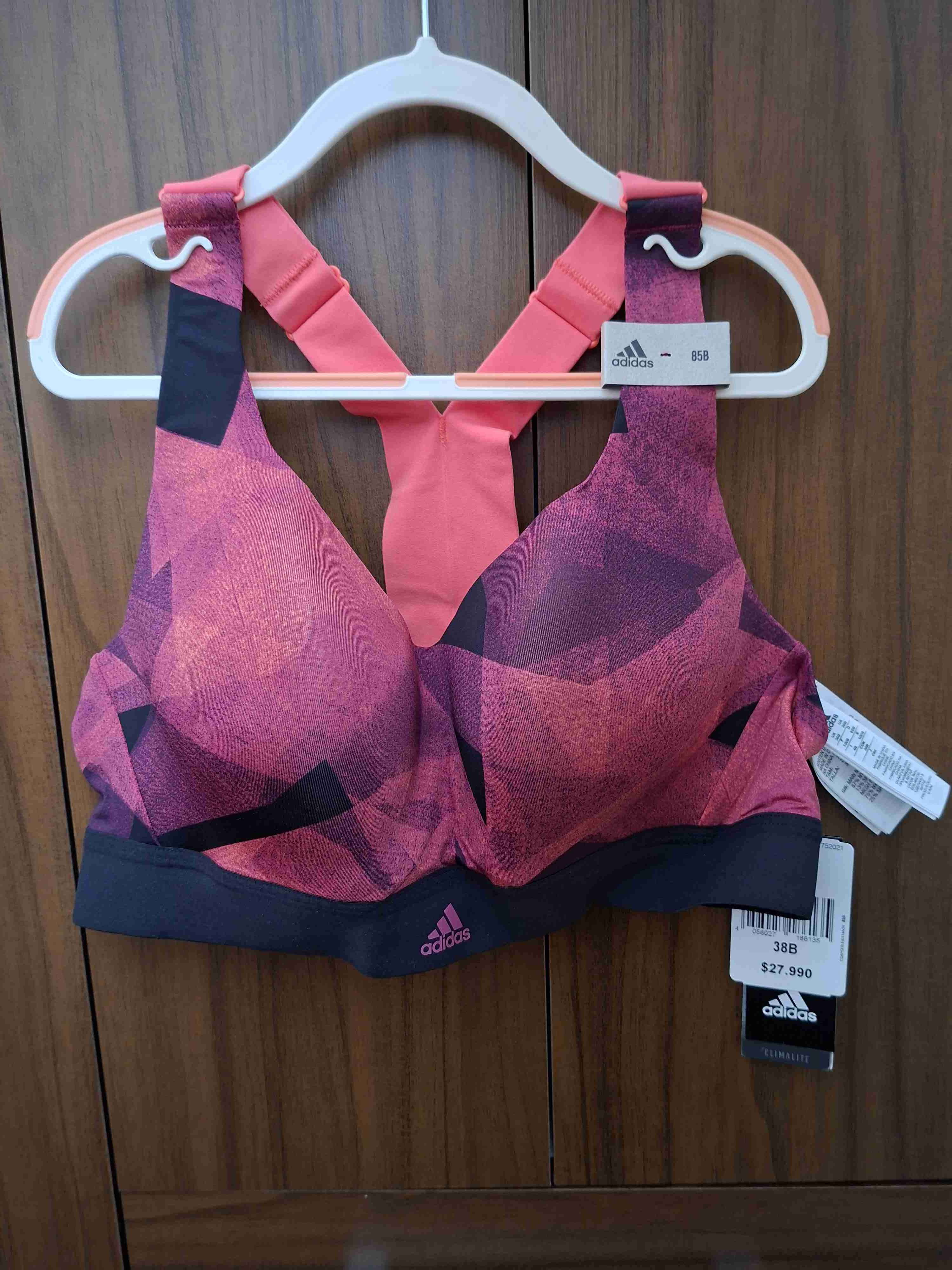 Sosten deportivo en tonos rosas, ideal para actividad física. Nuevo con etiquetas visibles. Talla 38B