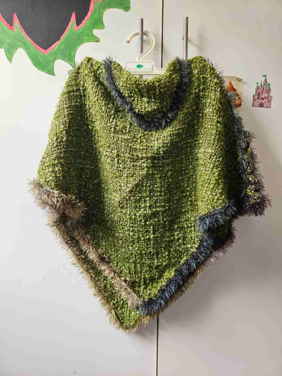 Poncho tejido verde con flecos