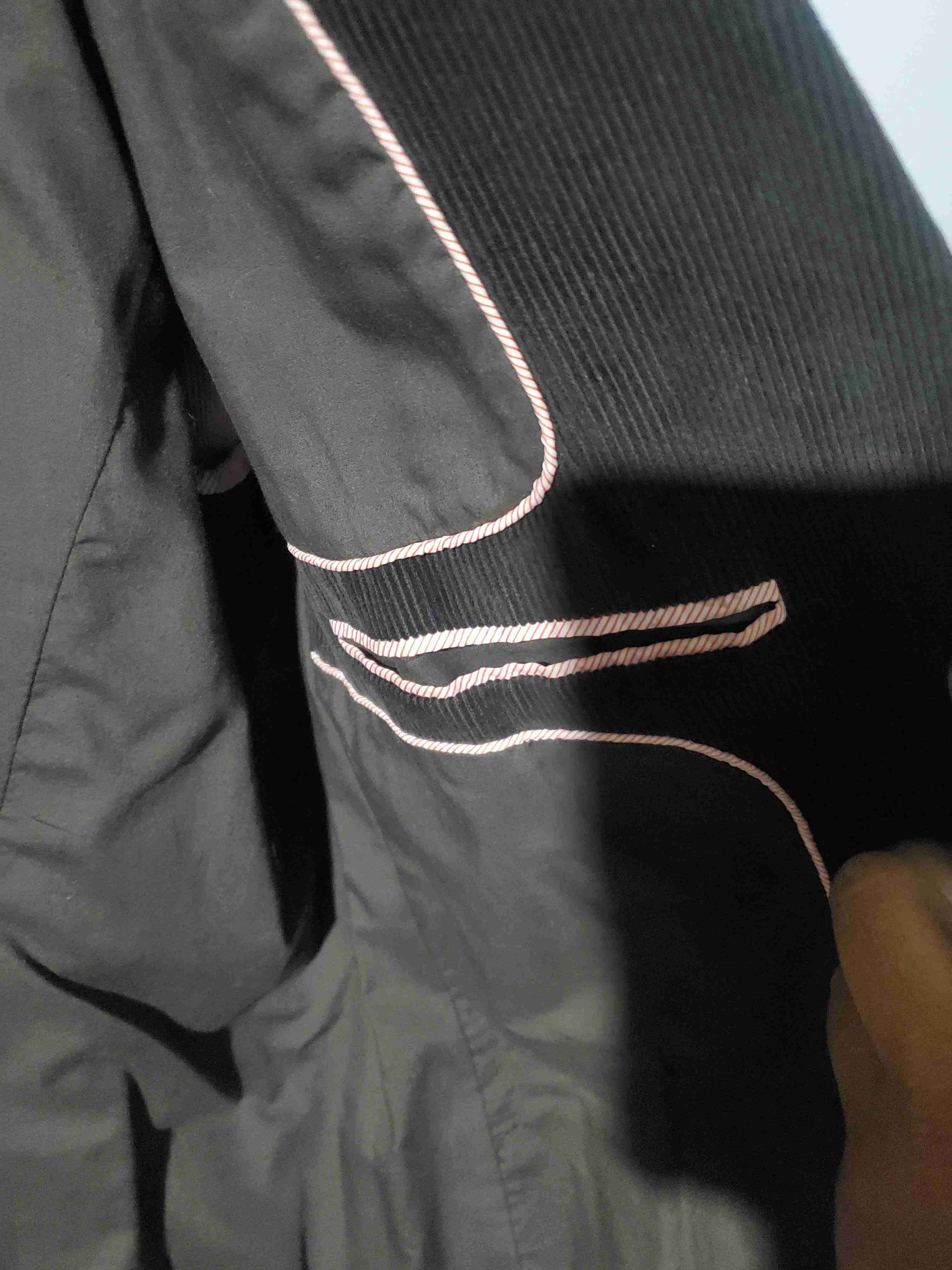 Elegante abrigo negro con detalle de ribete blanco. Ideal para un look formal. Buen estado general.