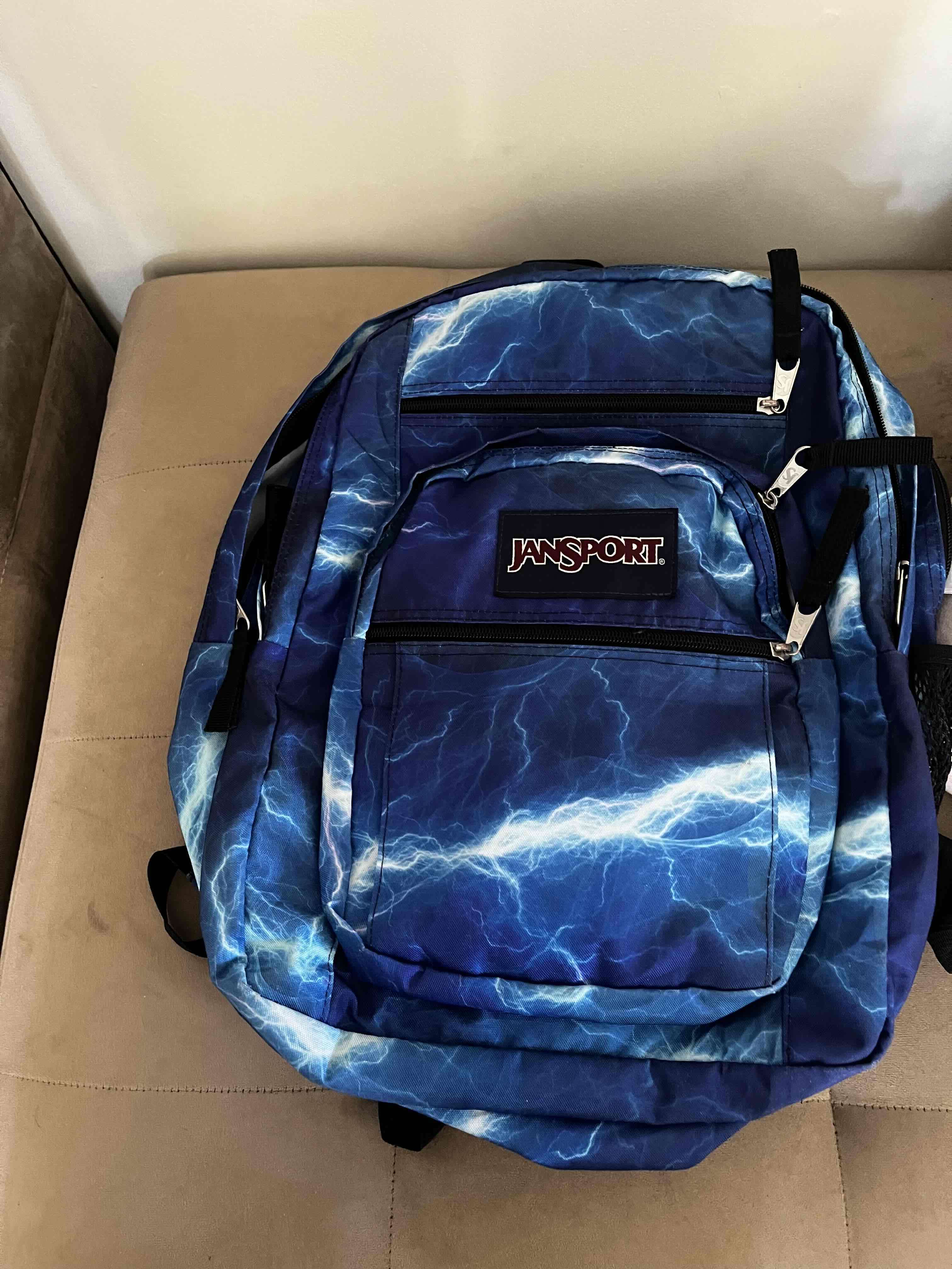 Mochila Jansport con diseño de rayos, ideal para uso diario. En buen estado general.