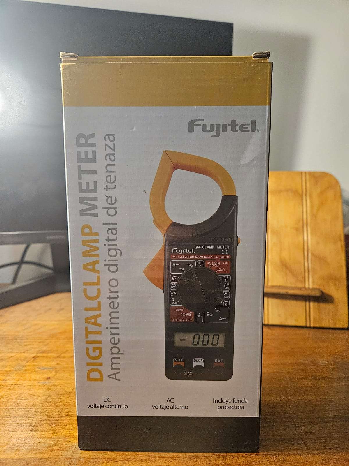 Amperímetro digital de tenaza, ideal para trabajos eléctricos. Incluye funda protectora.