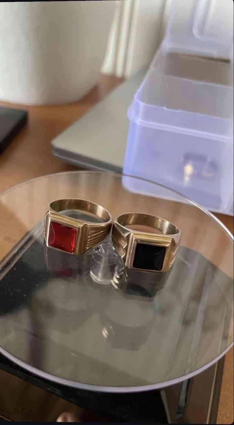anillos vintage con piedras en rojo y negro. Diseño clásico y elegante, nuevo.