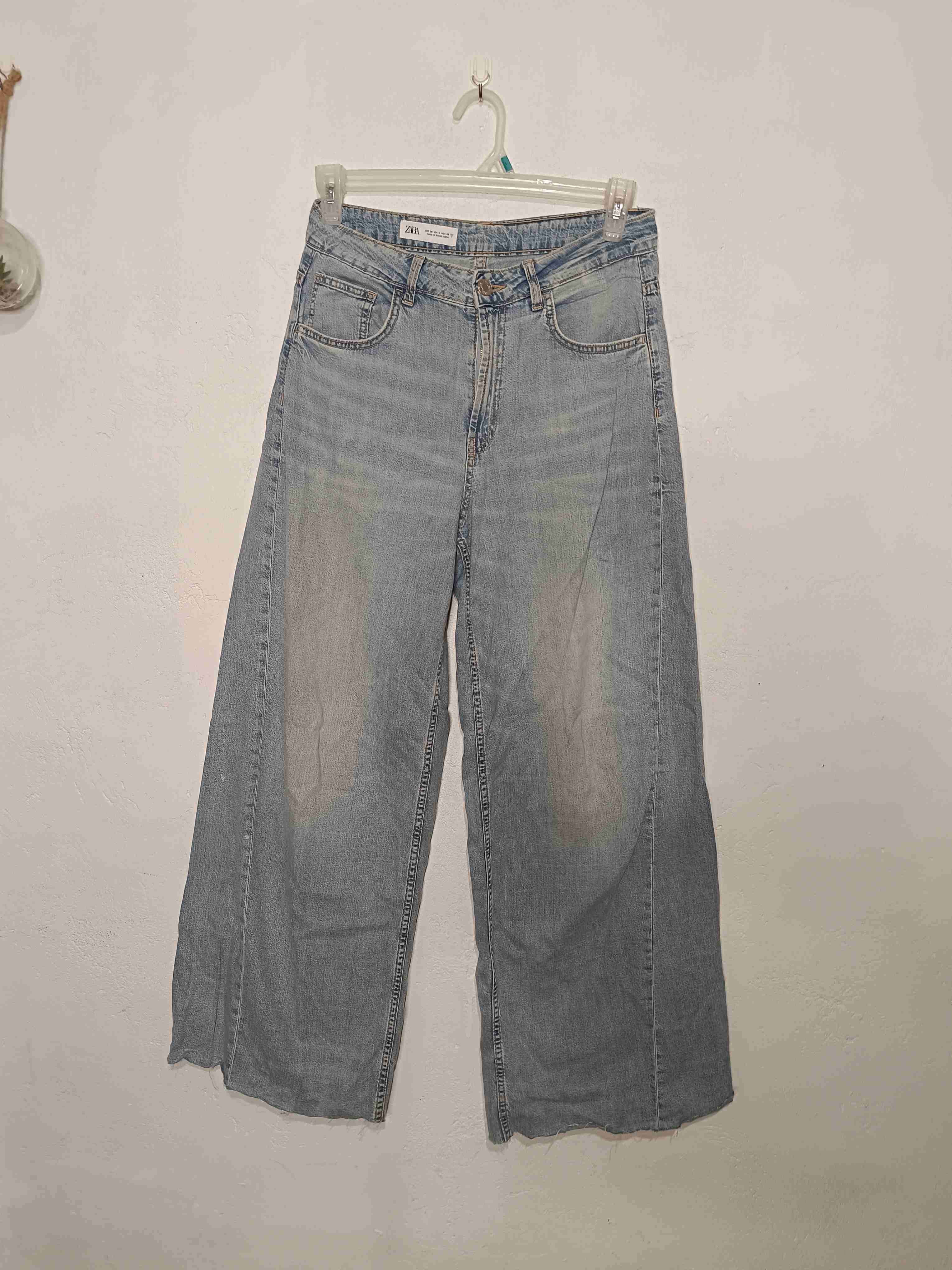Jeans de corte ancho en color gris, estilo desgastado. Perfectos para un look casual.