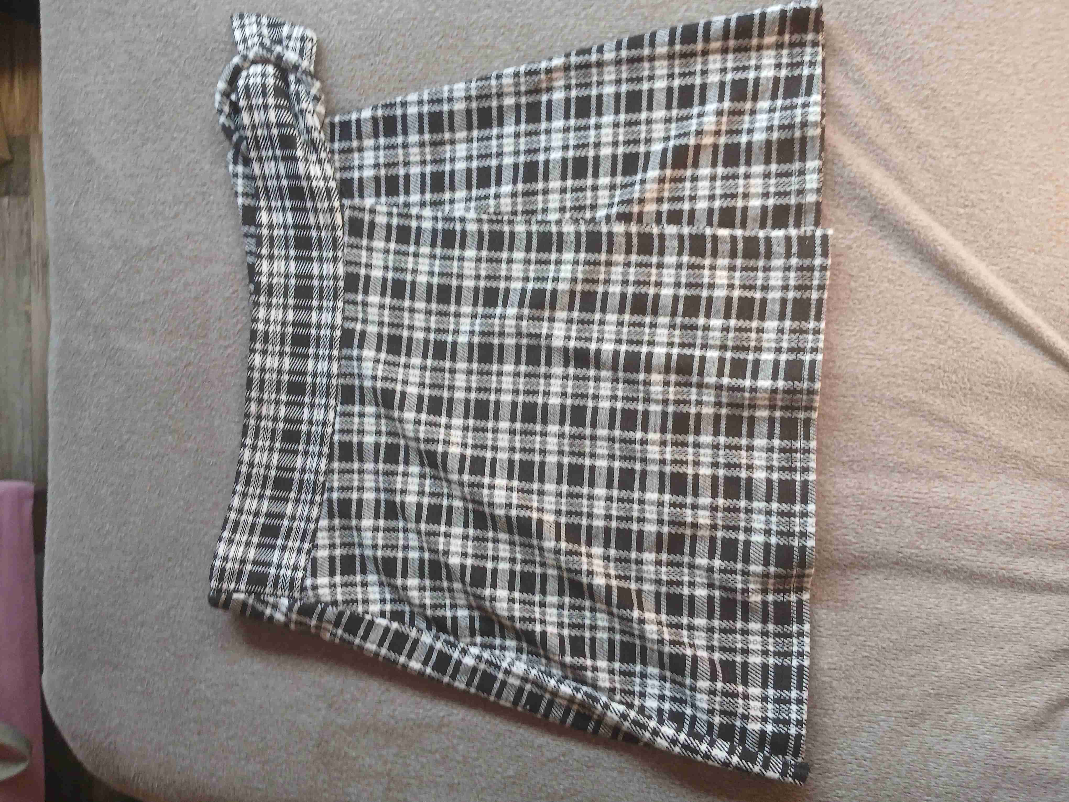 Falda corta de cuadros en buen estado, ideal para salidas casuales o formales.