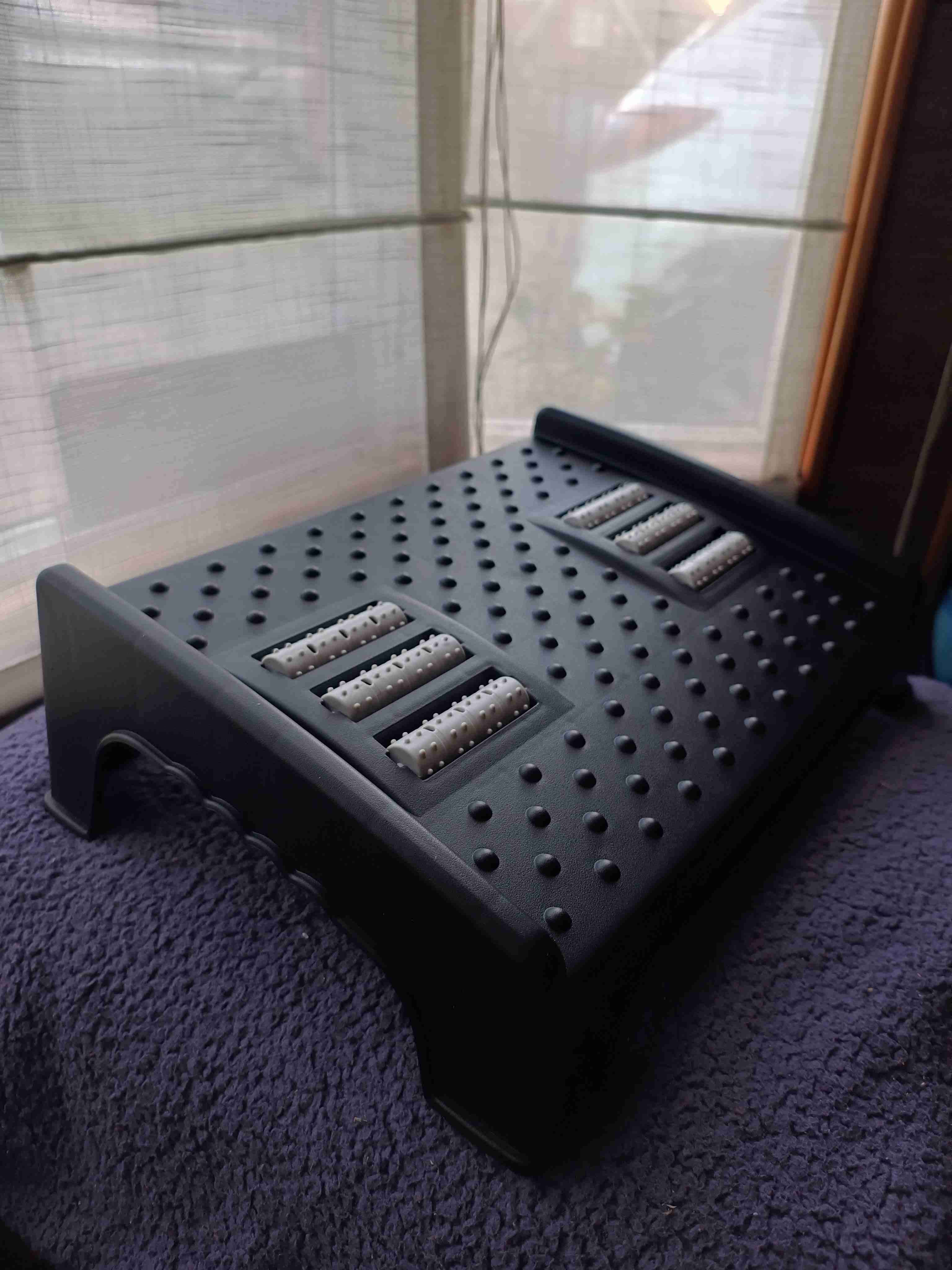 Apiyapiés ergonómico en color negro ideal para oficina o casa nuevos, sin uso. Perfecto para mejorar la postura. Con rodillos