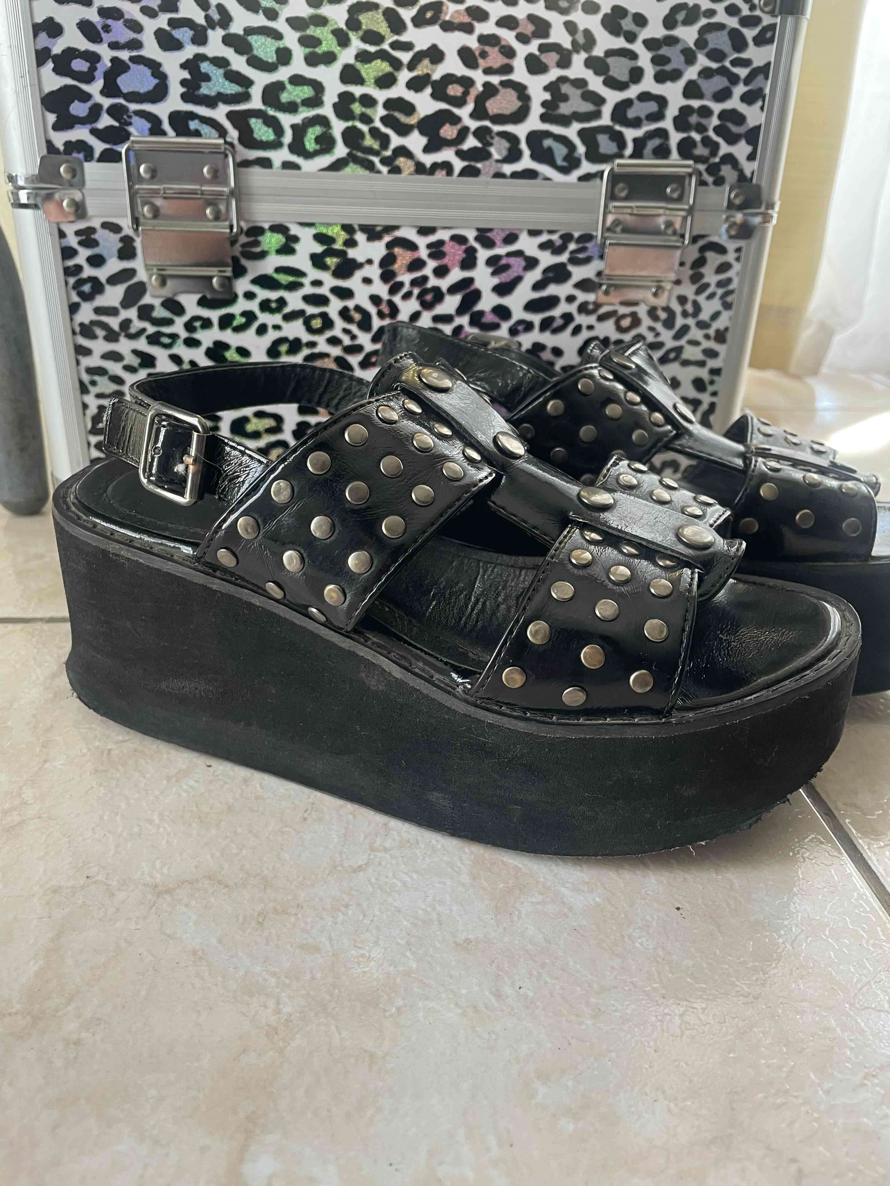 Sandalias negras con plataforma y detalles de tachas, estilo moderno y llamativo. Ideales para un look alternativo y cómodo.