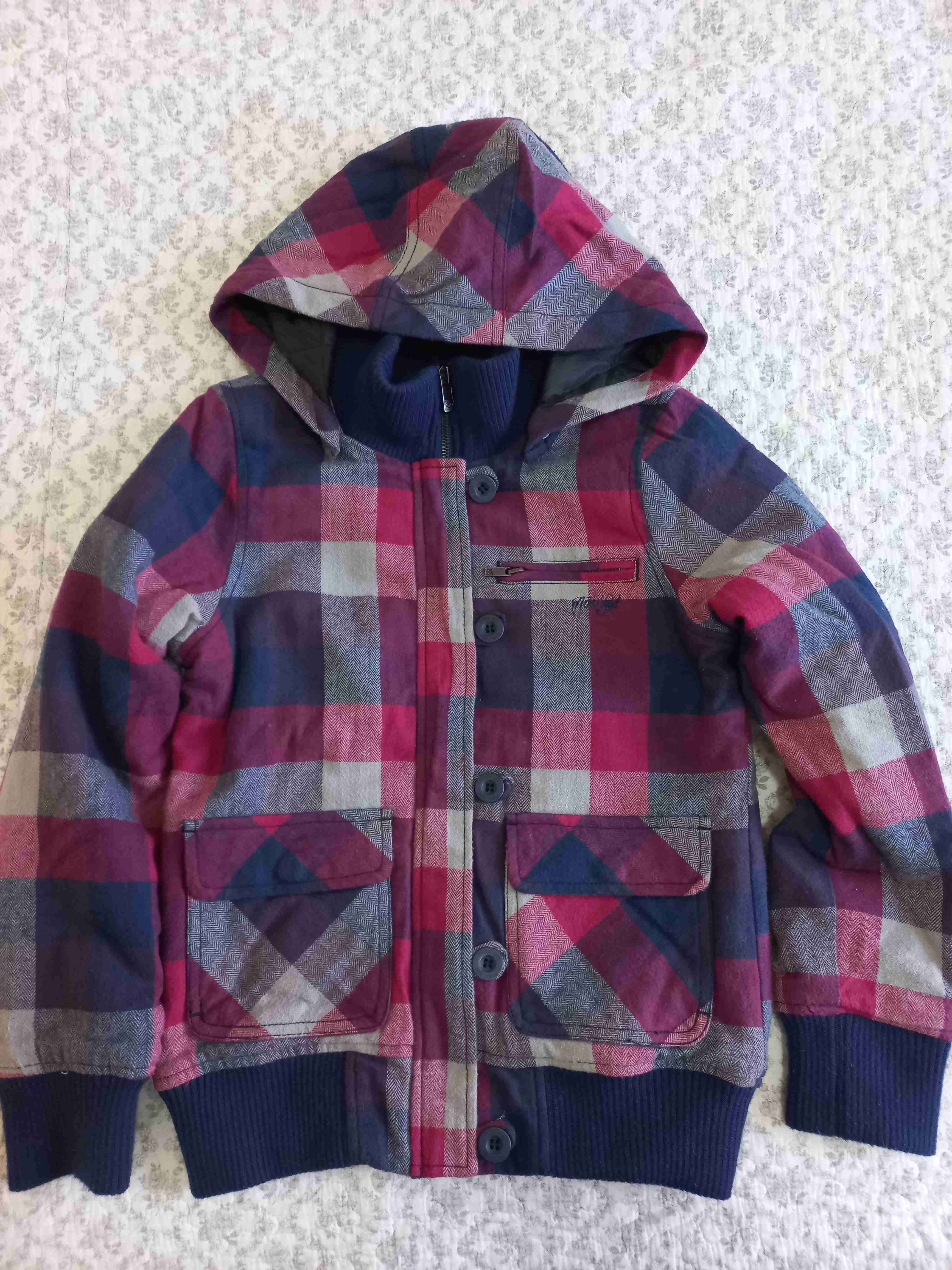 Chaqueta con capucha a cuadros rojos y azules Maui Girl talla 14. Ideal para mantener el calor en días fríos. En buen estado.