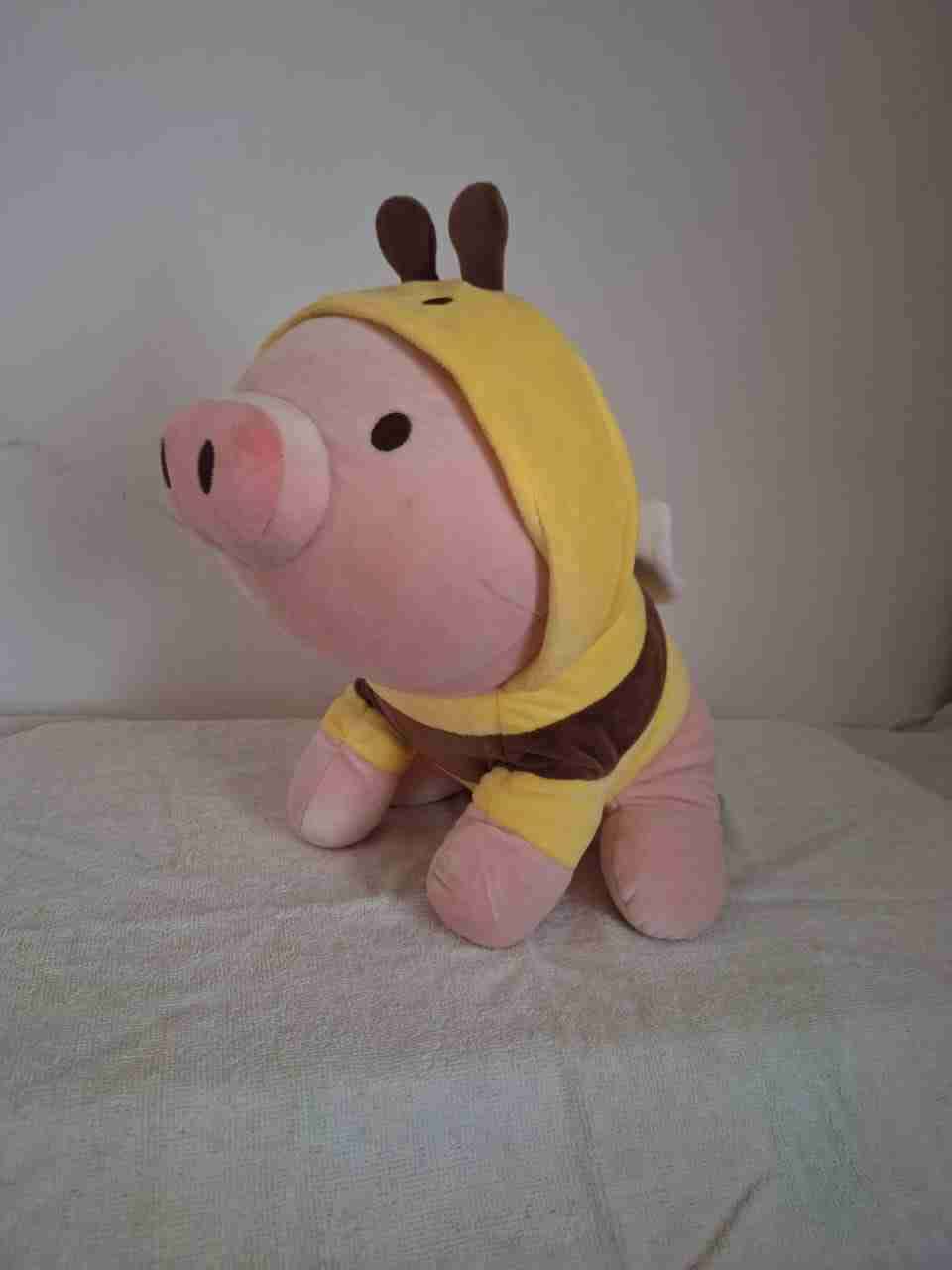 Adorable peluche de cerdito con disfraz de abeja. Perfecto para decorar o para regalo.