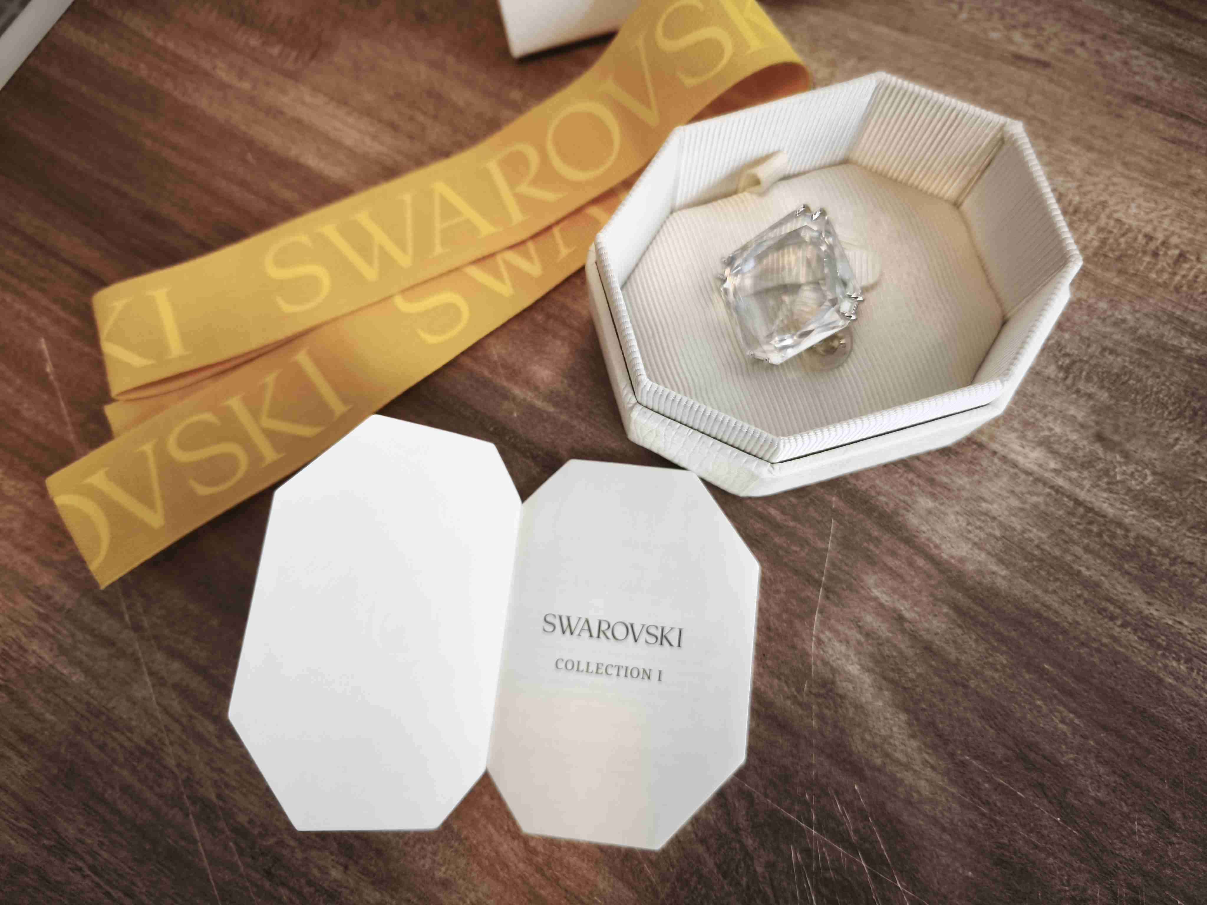 Hermoso y elegante aro Unitario Swarovski con clip de presión , cristal transparente facetado, medidas 2.5 x 2.5 cm , grande , baño de rodio sello marca encriptado.