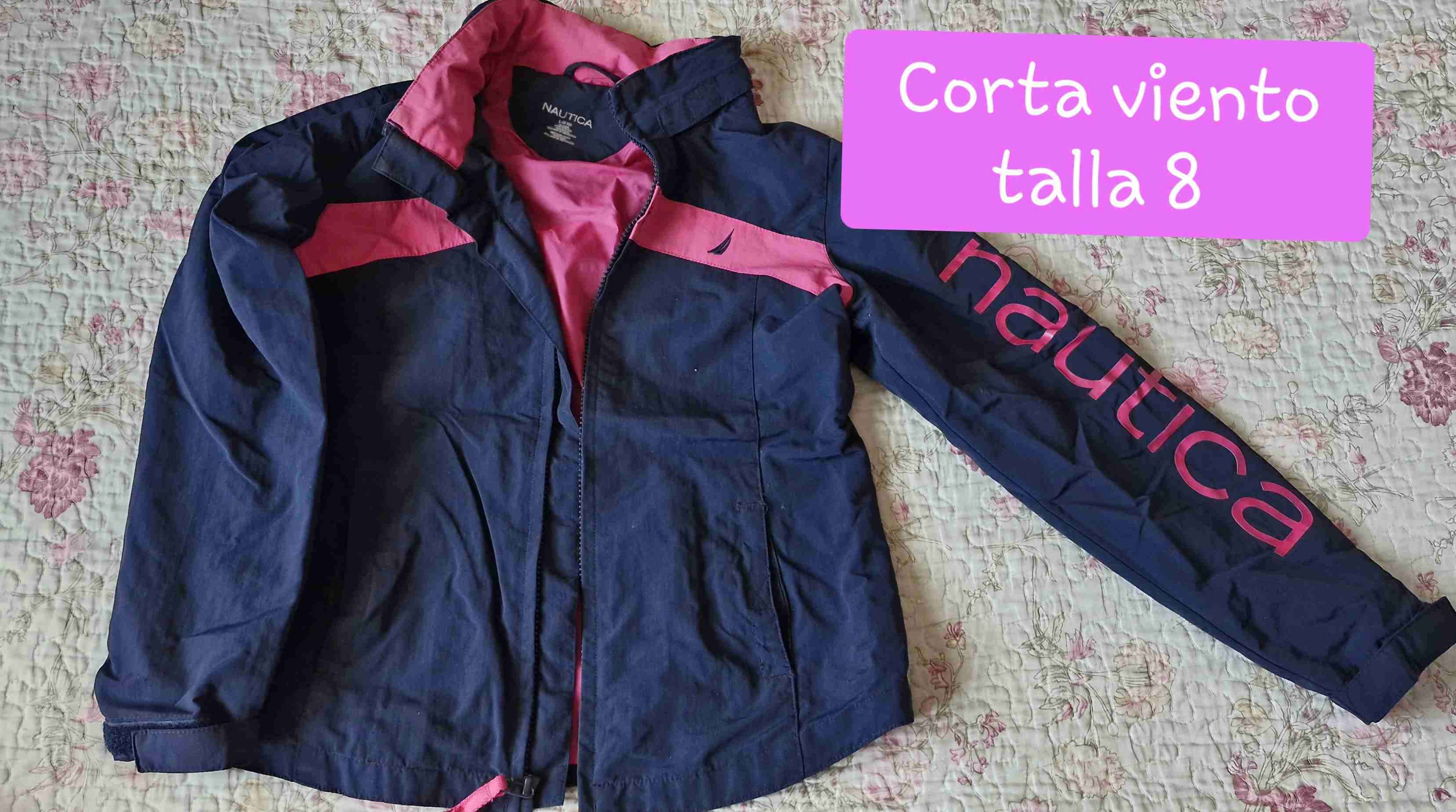 Corta viento para niña en colores azul y rosa. Ideal para días ventosos, en buen estado general.