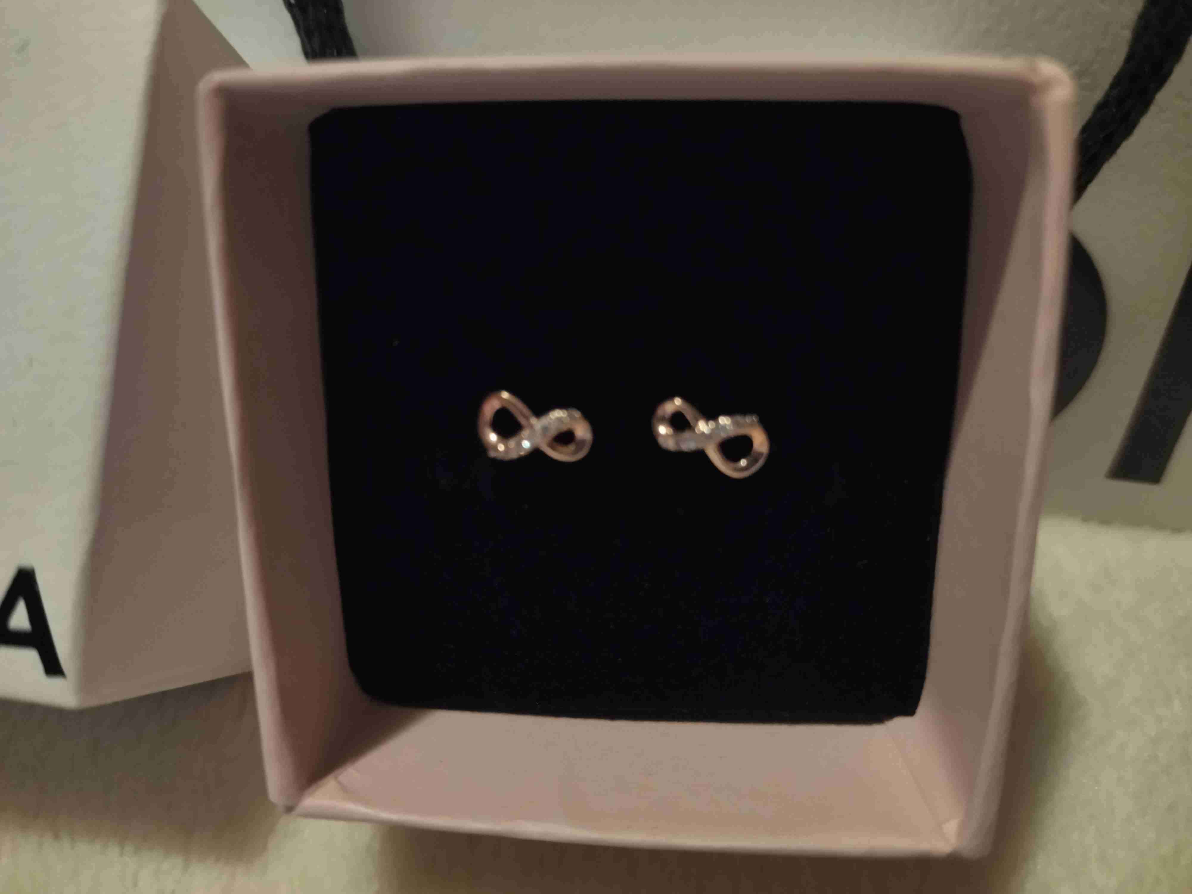 Elegantes aros con diseño de infinito en color dorado. Presentados en caja original, Pandora, bañado en oro, original y nuevo