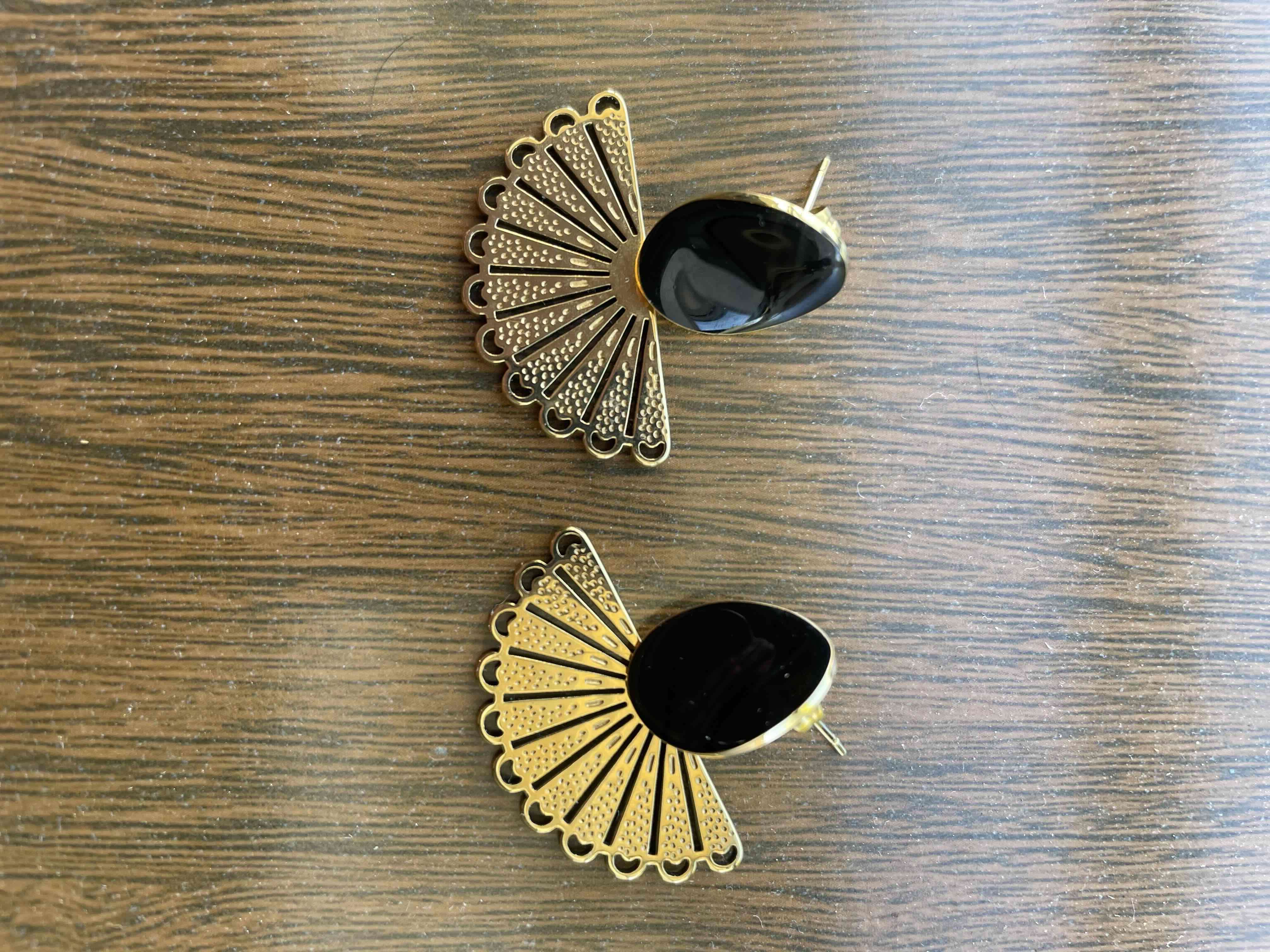 Elegantes aros dorados con detalle en negro. Perfectos para ocasiones especiales.