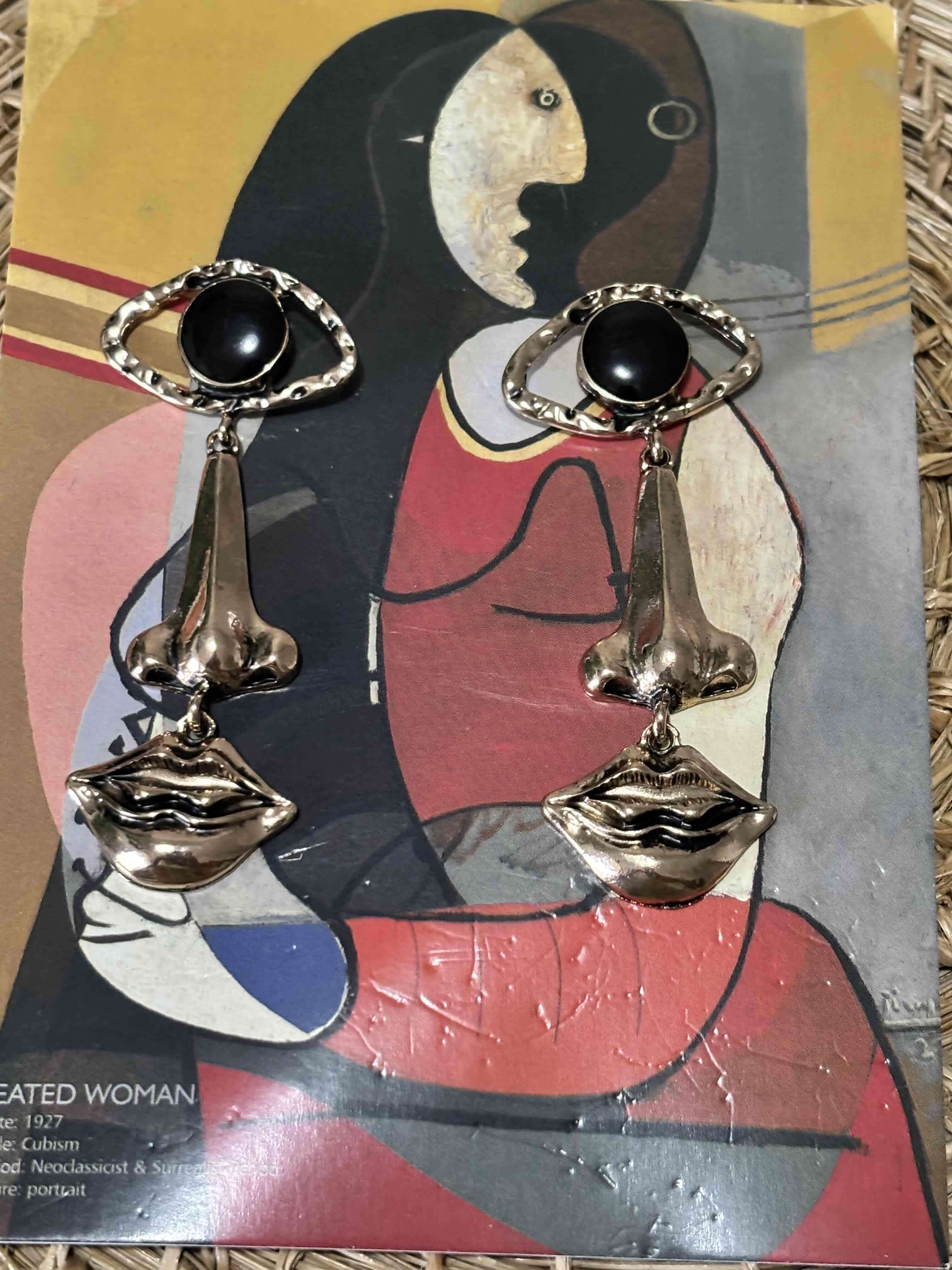 Pendientes dorados con diseño artístico y detalles en negro. Perfectos para destacar tu estilo.