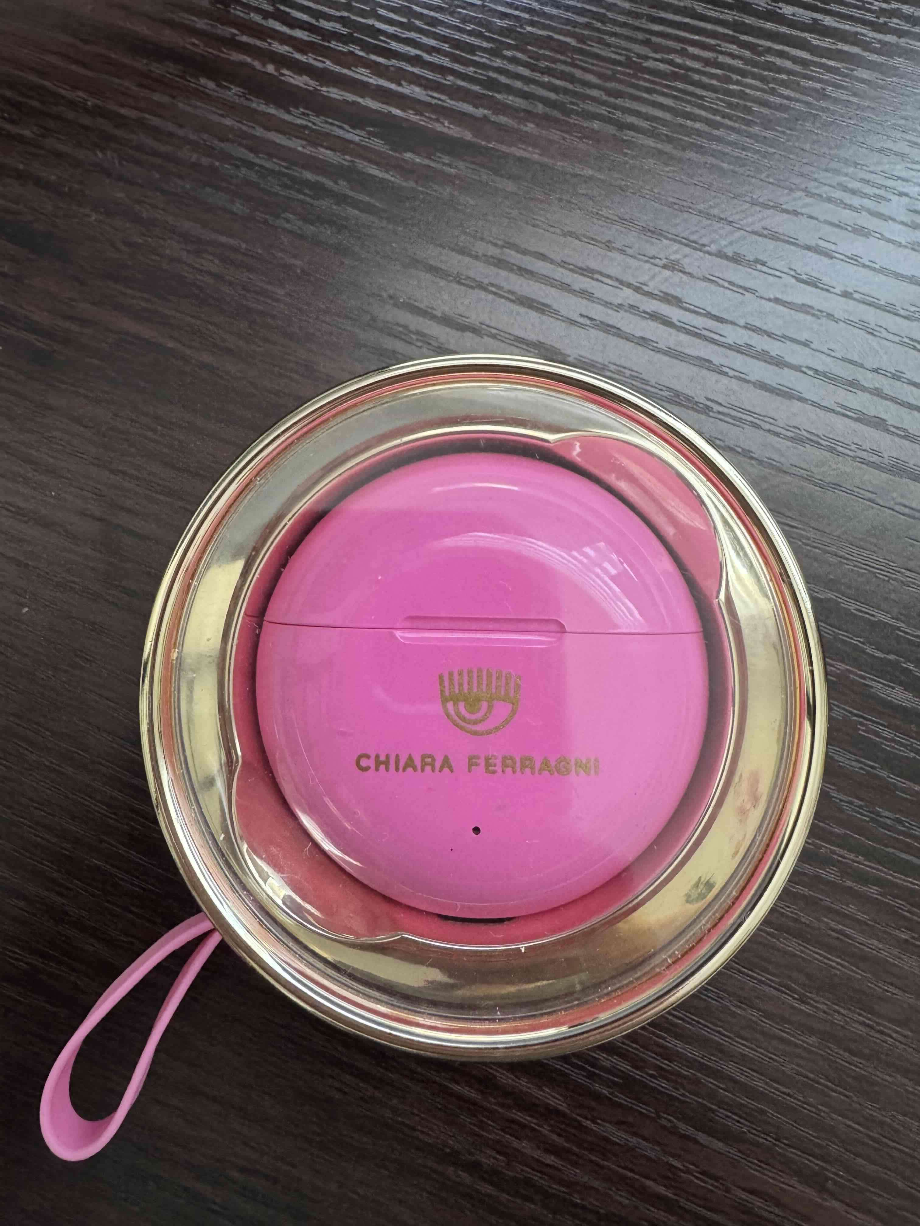 Audifonos circular rosa brillante de Chiara Ferragni. Elegante y práctico, ideal para maquillaje o accesorios pequeños.originales