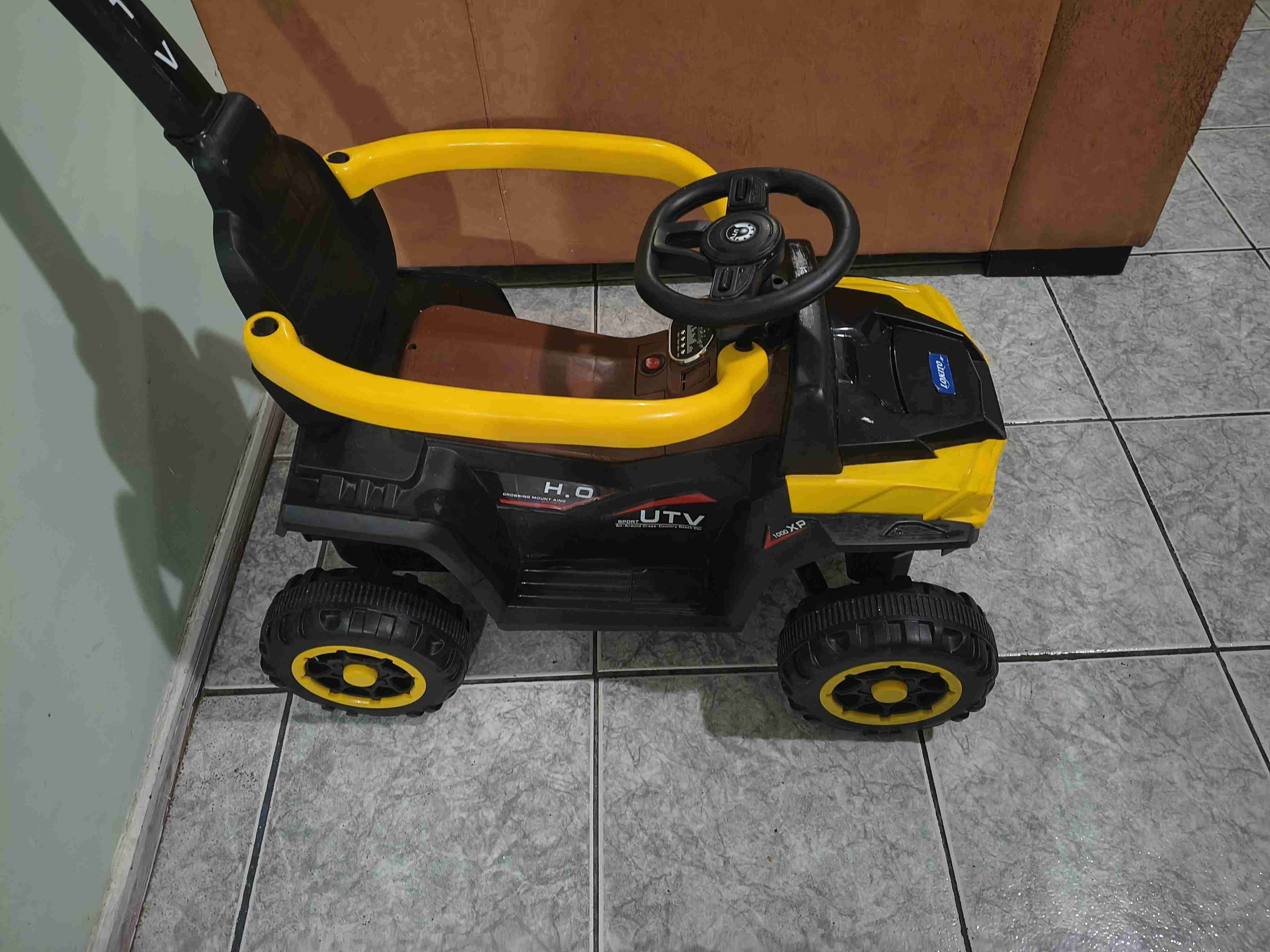 Auto a batería en buen estado, ideal para paseos al aire libre. Color negro y amarillo.