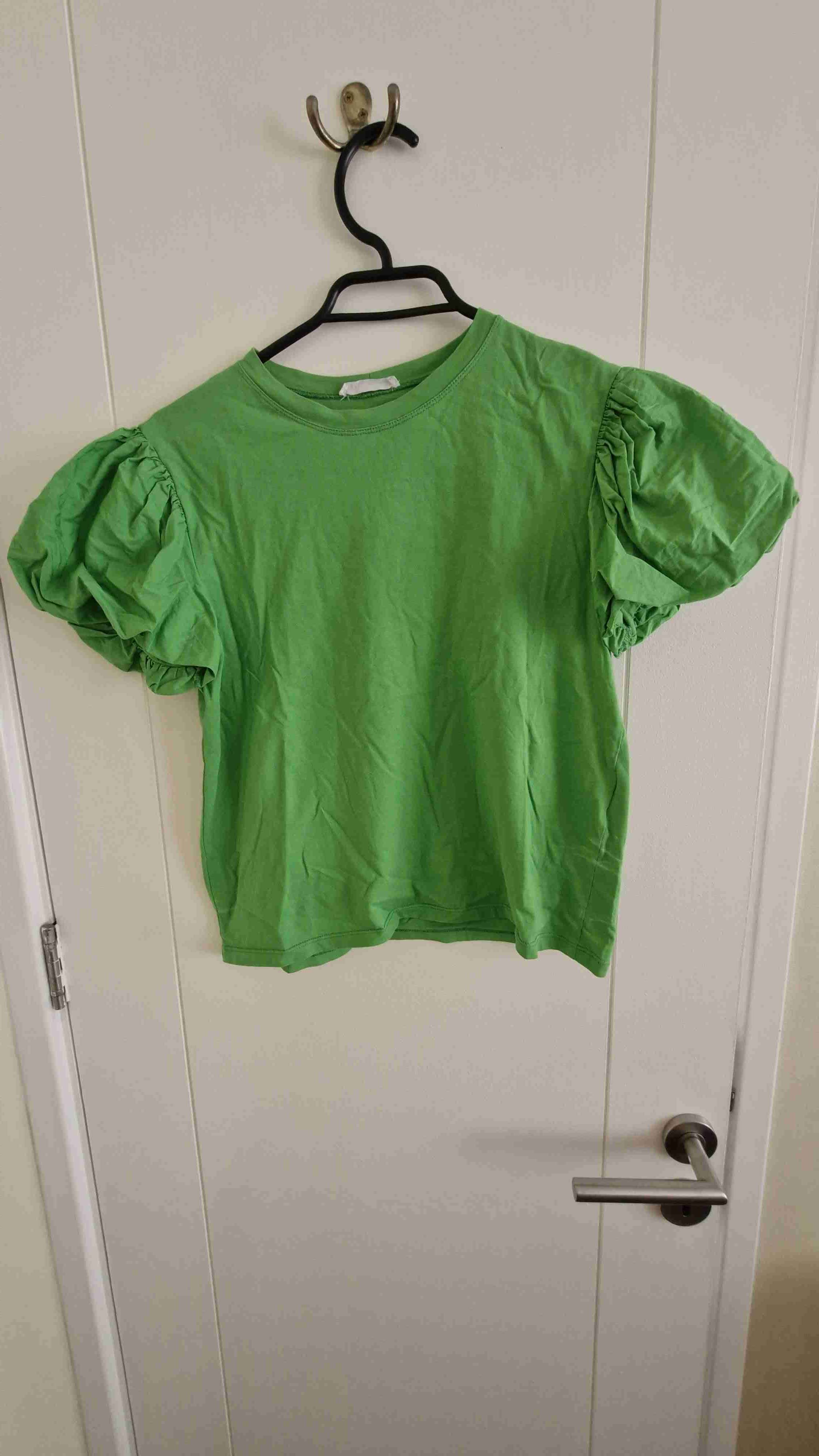Polera verde con mangas abullonadas, ideal para un look casual. En buen estado.