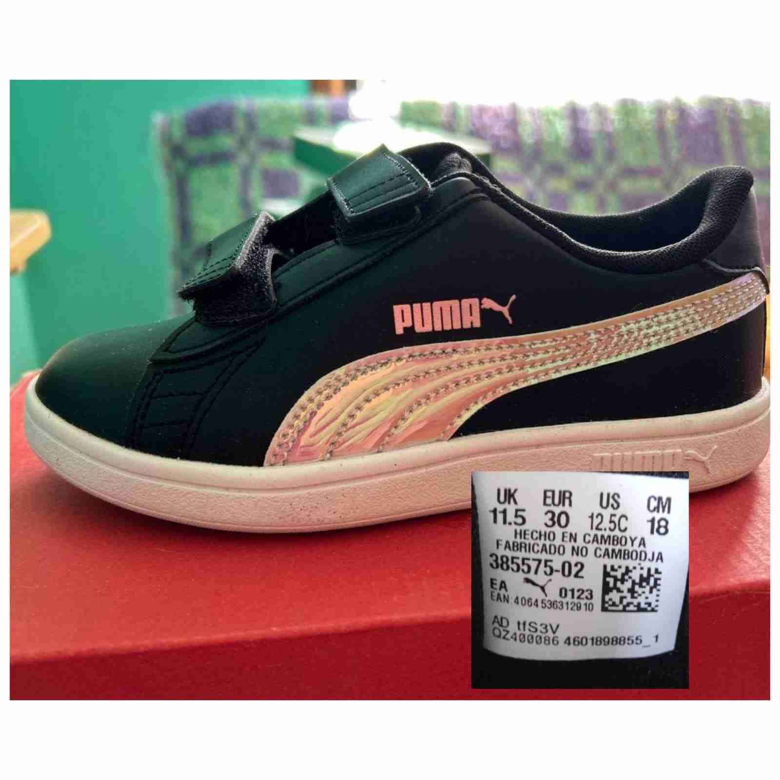 Zapatillas negras con detalles tornasol, ideales para el uso diario de los niños. En buen estado.