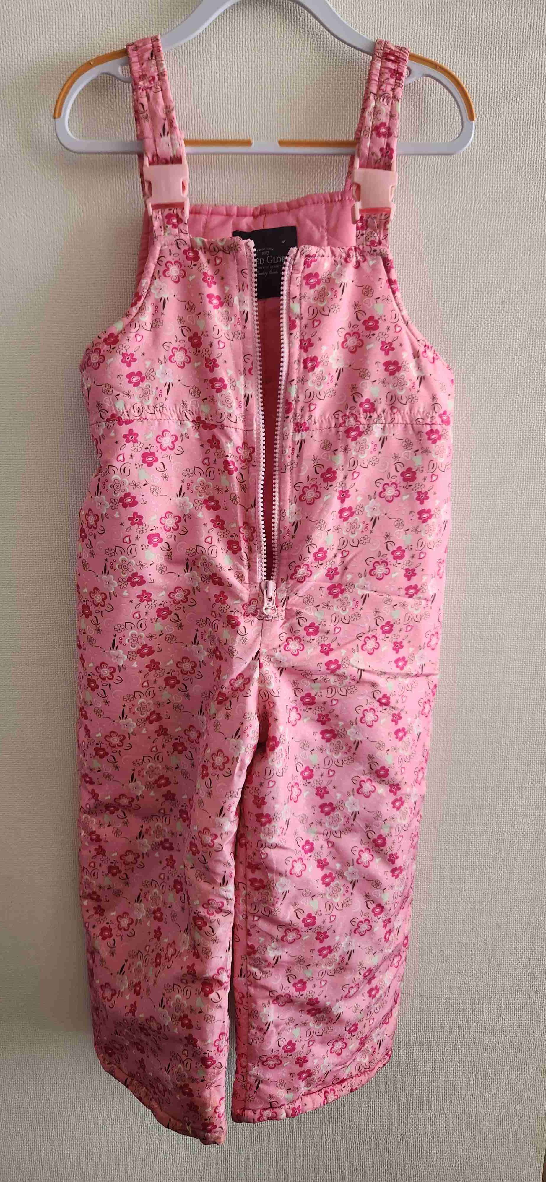 Pantalón de nieve para niña, color rosa con estampado floral, perfecto para días fríos. En buen estado.