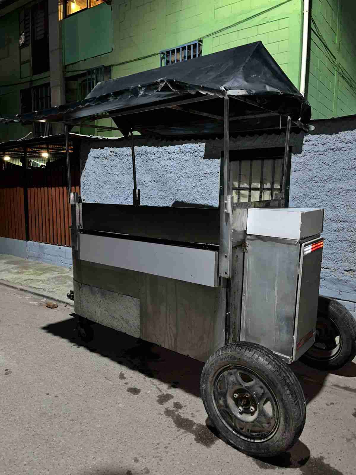 Carro de comida de metal con techo, ideal para venta ambulante. En buen estado.3 fogones más plancha bañó María llegar y trabajar
