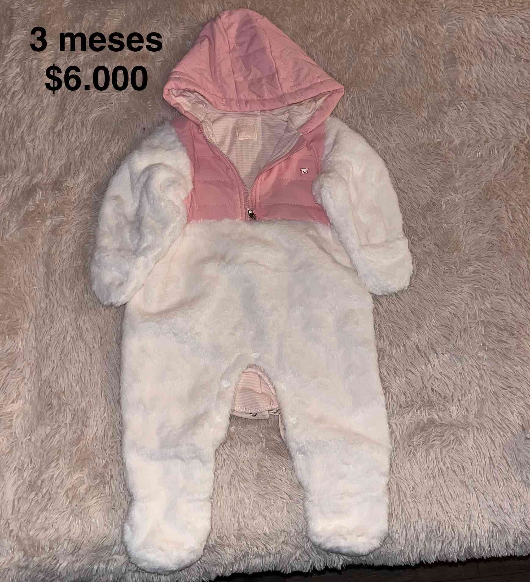 Enterito polar blanco y rosado con capucha, ideal para el invierno. En buen estado, muy abrigador.