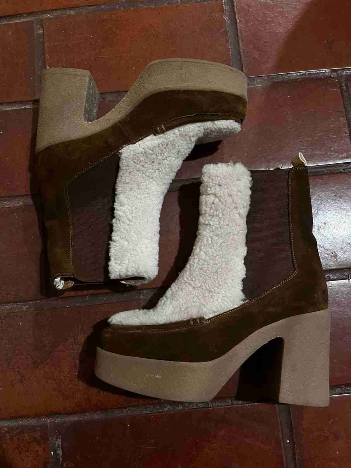 Botines marrones con plataforma alta y forro de lana sintética, perfectos para el invierno. En buen estado con detalles mínimos de uso. Cualquiera en $5.000 Entrego en Centro de Villa Alemana