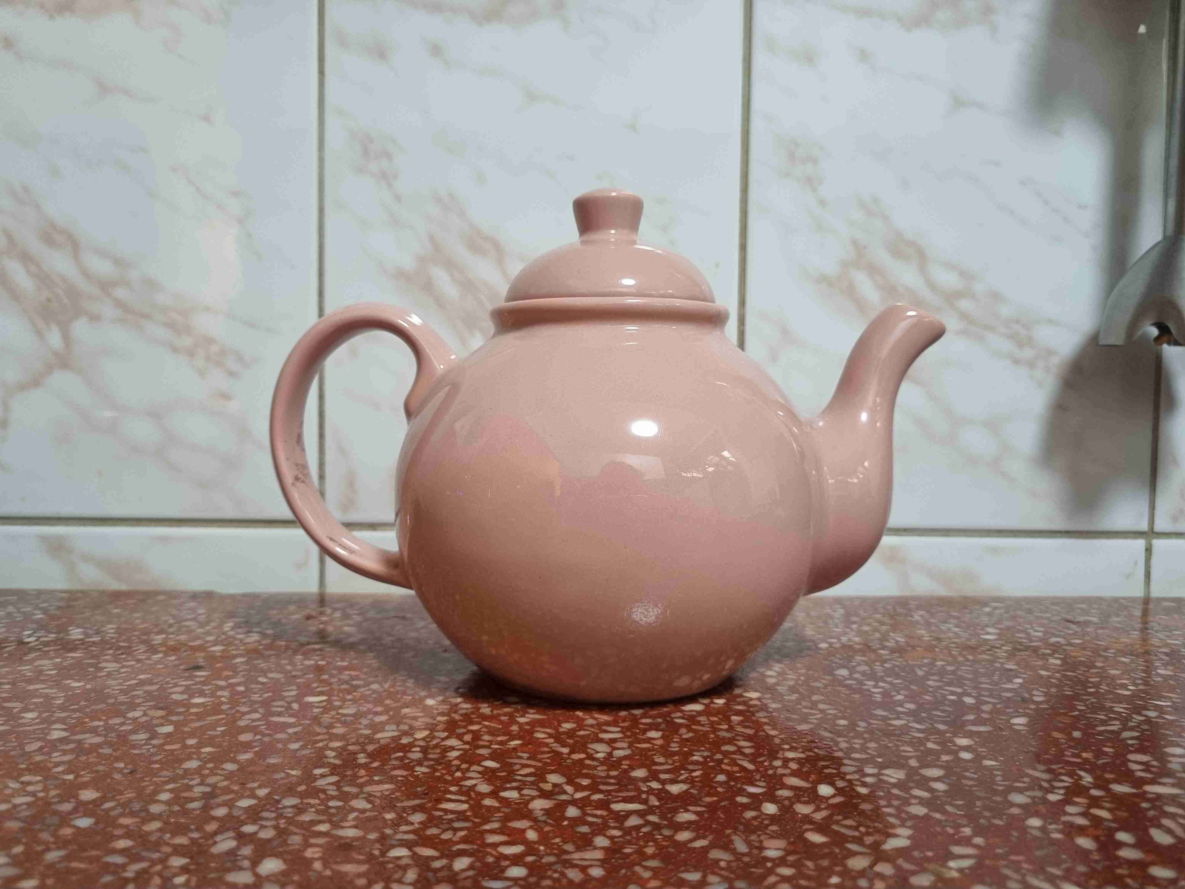 Elegante tetera de cerámica en color rosado. Ideal para servir té en reuniones con amigos. Se encuentra en buen estado.