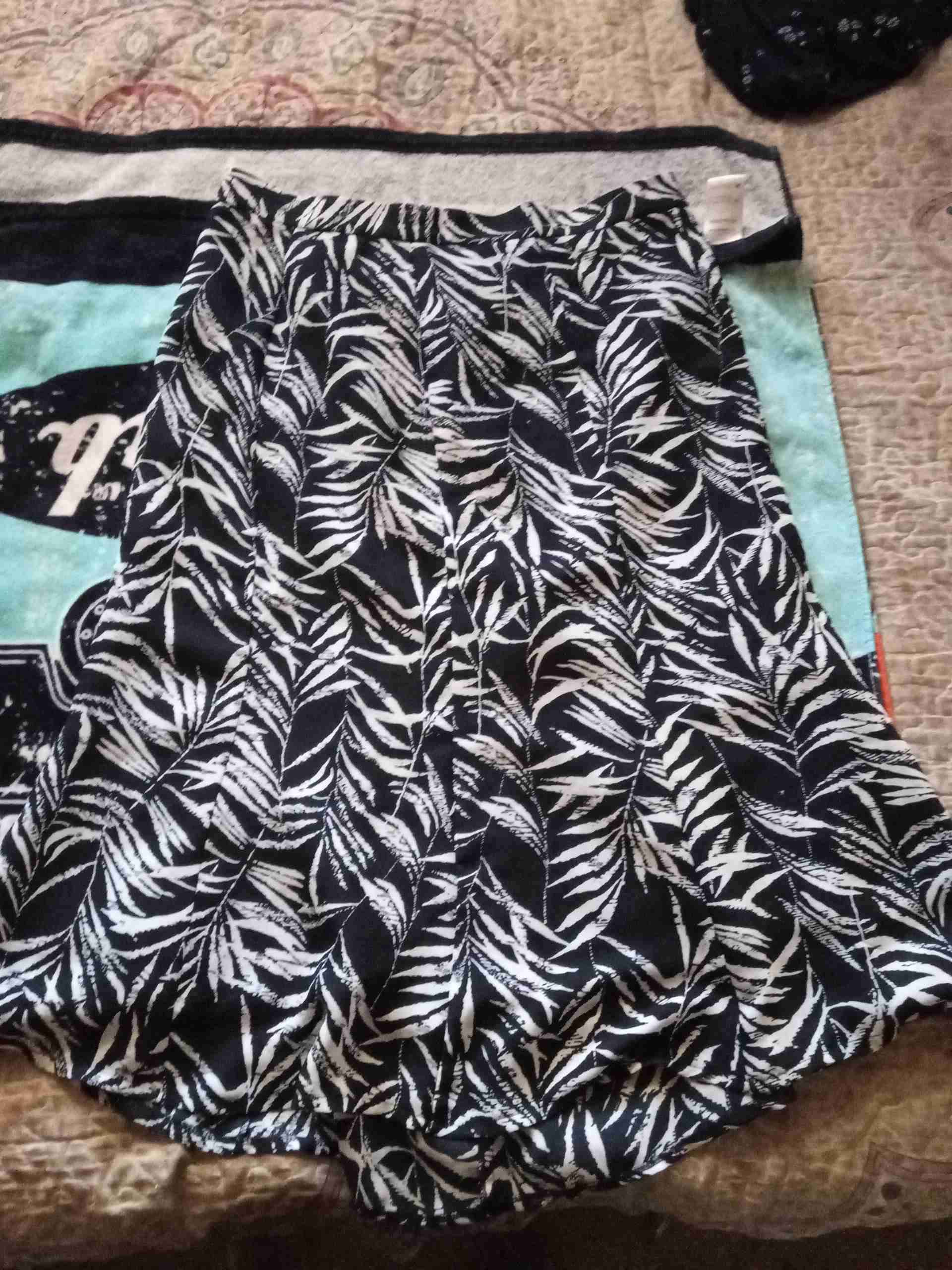 Falda corta con estampado de hojas blancas y negras. Ideal para el verano. En buen estado general.