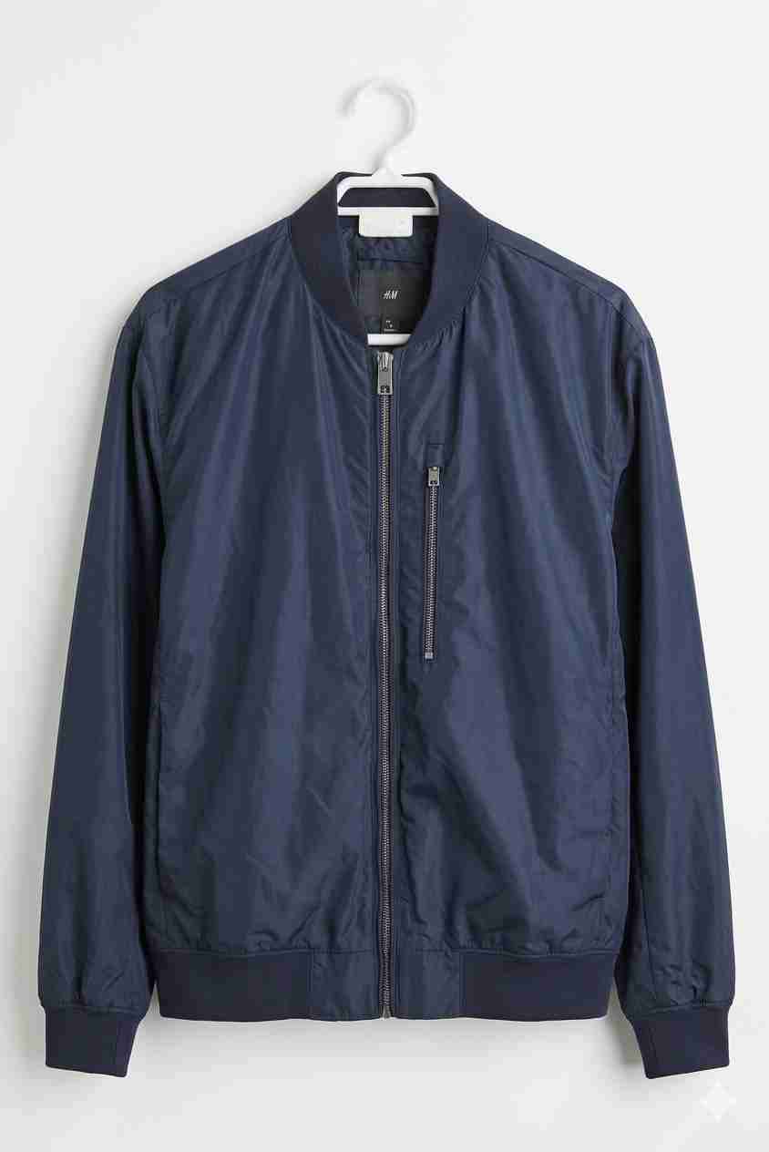 Chaqueta estilo bomber en color azul oscuro, perfecta para el entretiempo. Está en excelentes condiciones, fue solo usada una vez.