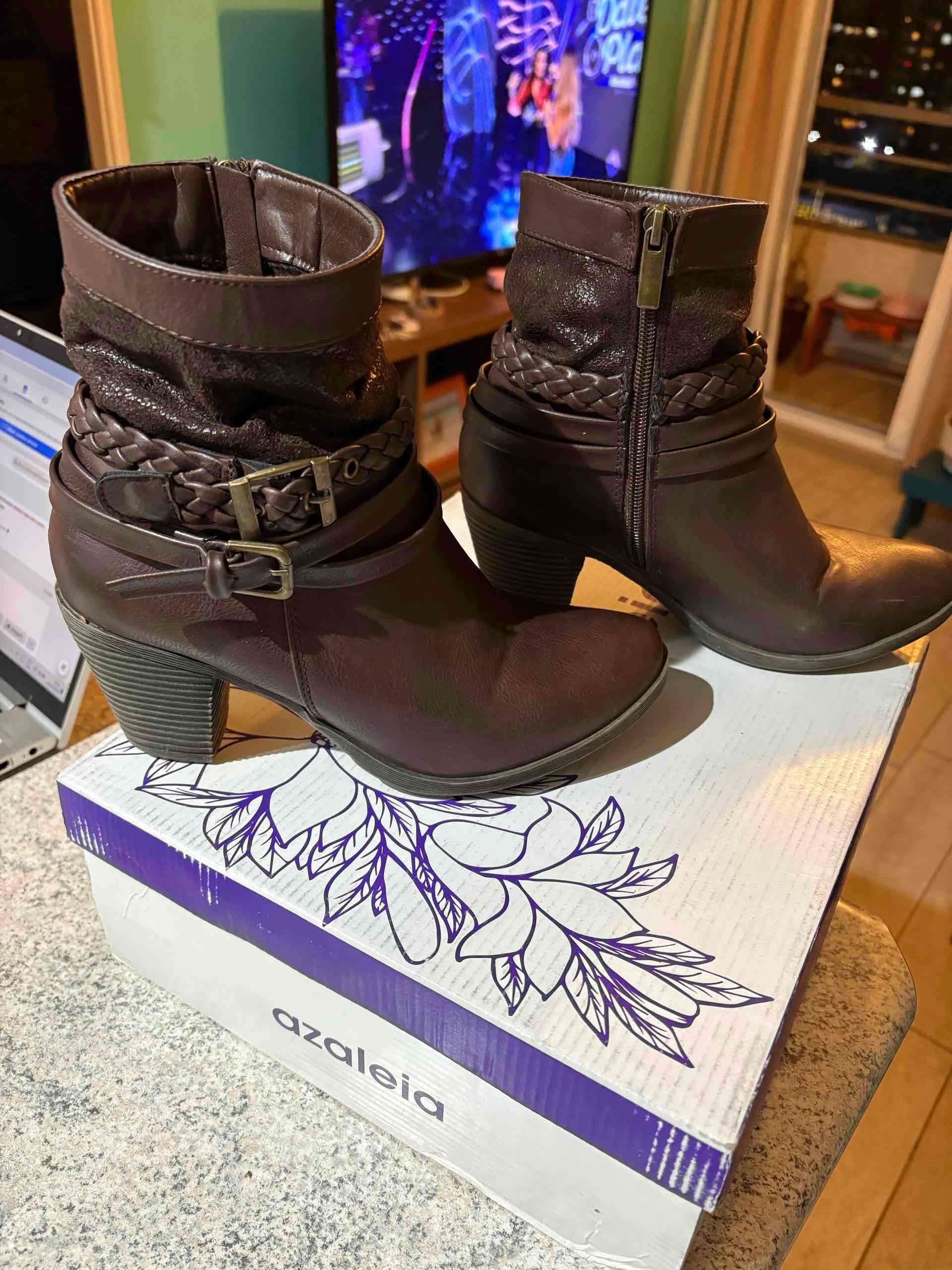 Botines de cuero marrón, elegantes con detalle trenzado. Muy buen estado, ideales para el invierno. Con cierre