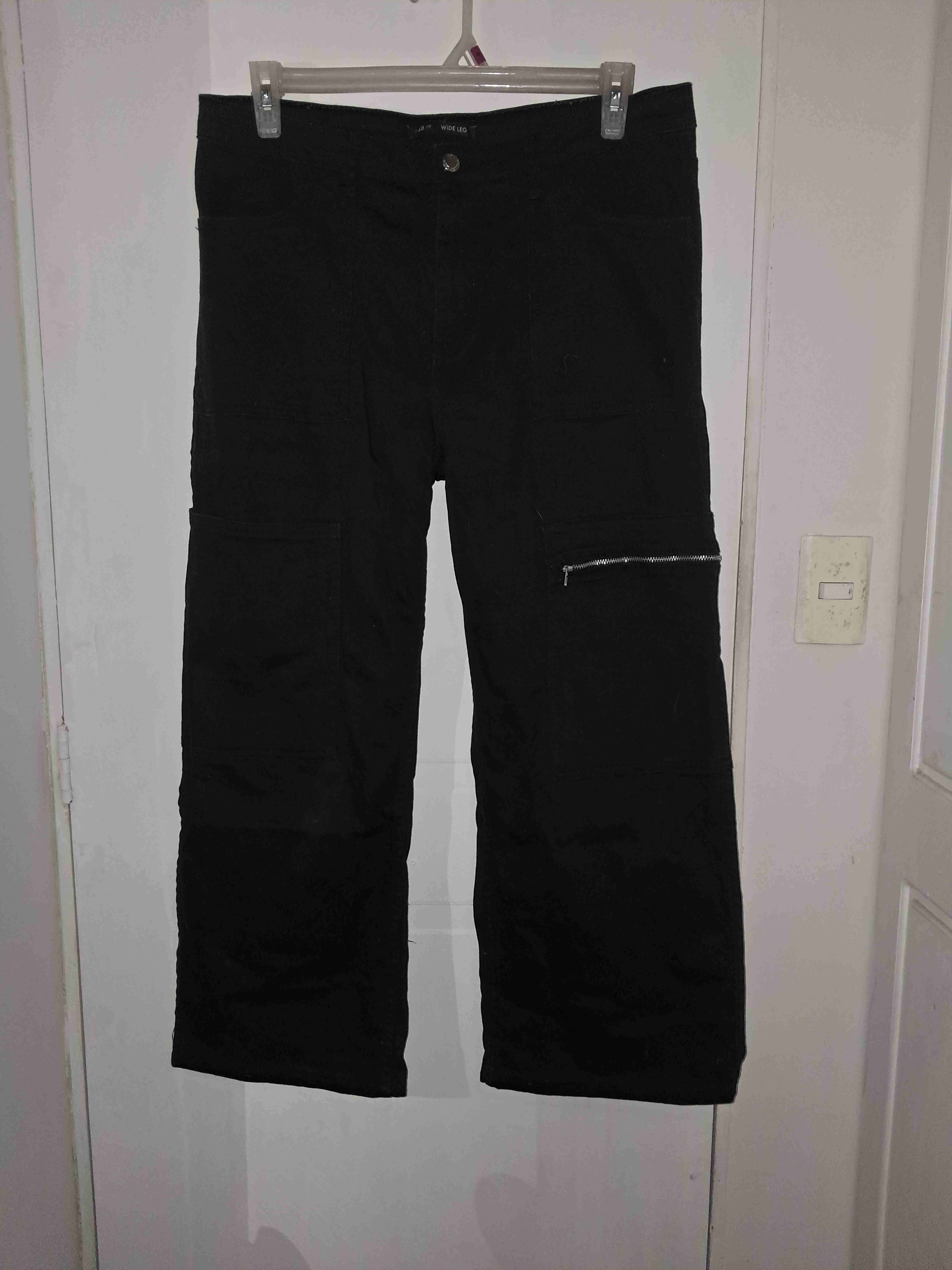 Pantalón ancho estilo cargo, color negro, modelo Wide leg, talla 48. Poco uso