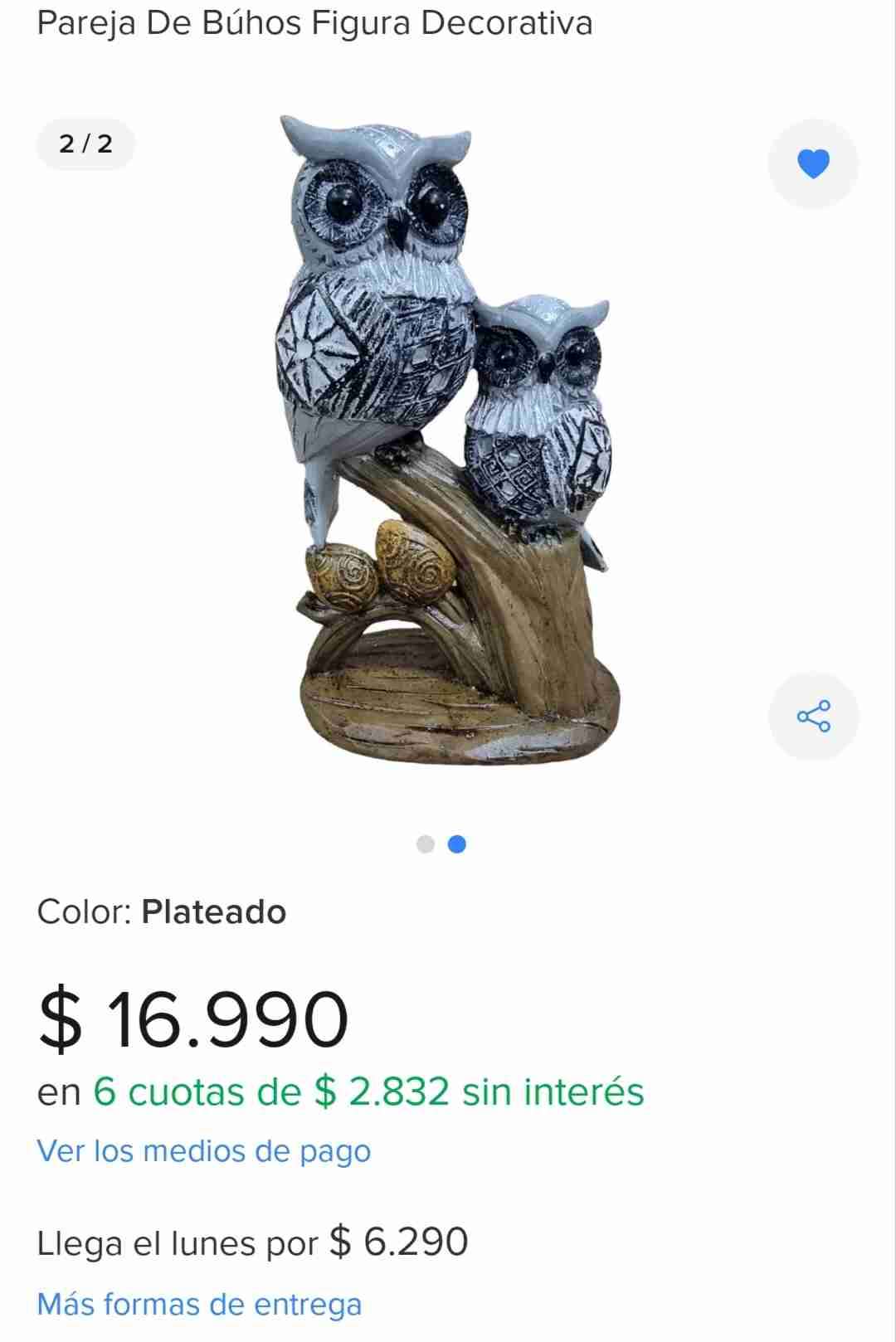 Elegante figura de búhos en color plateado, ideal para decorar tu hogar.