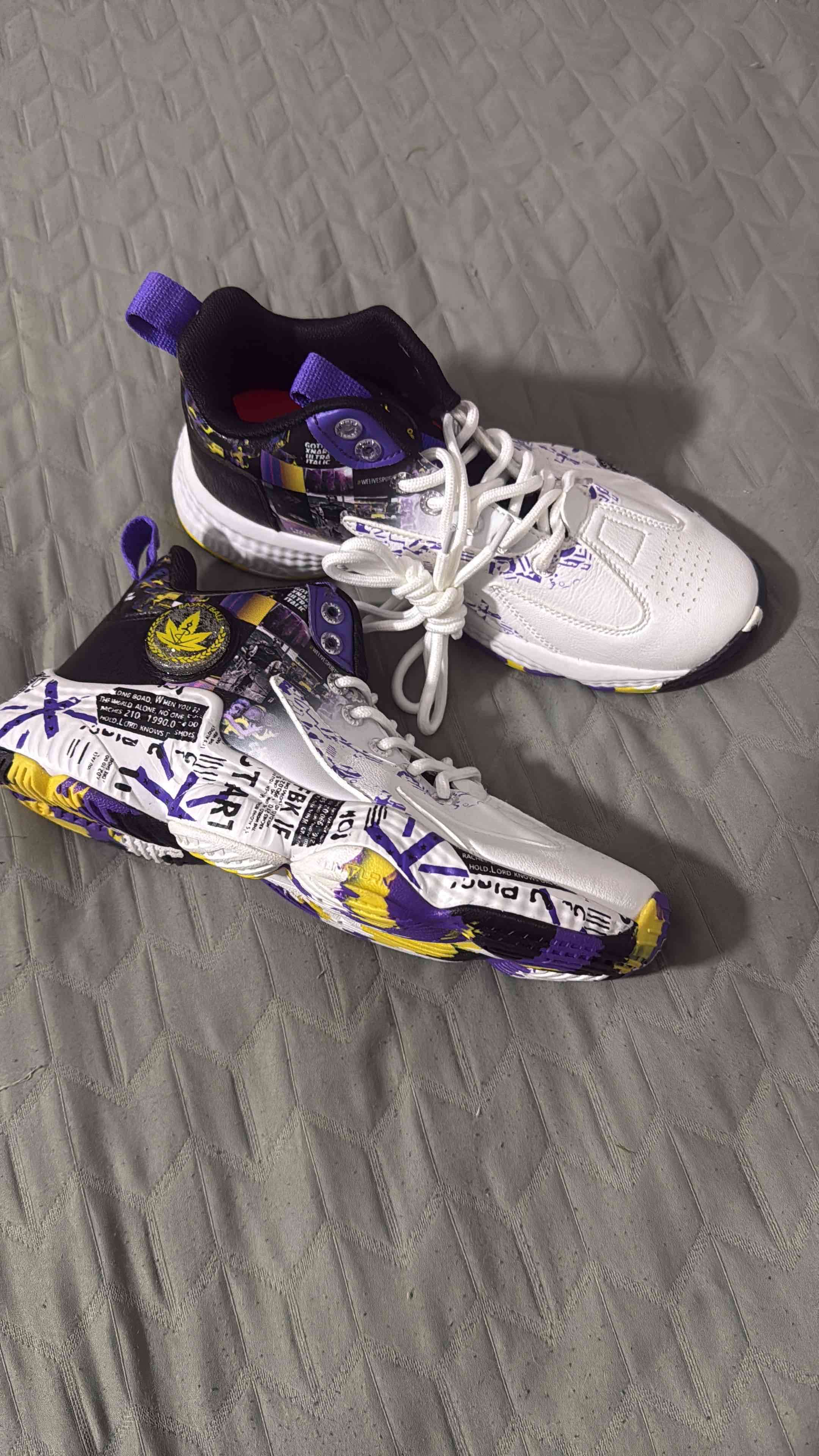 Zapatillas con diseño gráfico vibrante en morado y blanco, ideales para deporte o uso diario. Nuevas sin uso talla 37